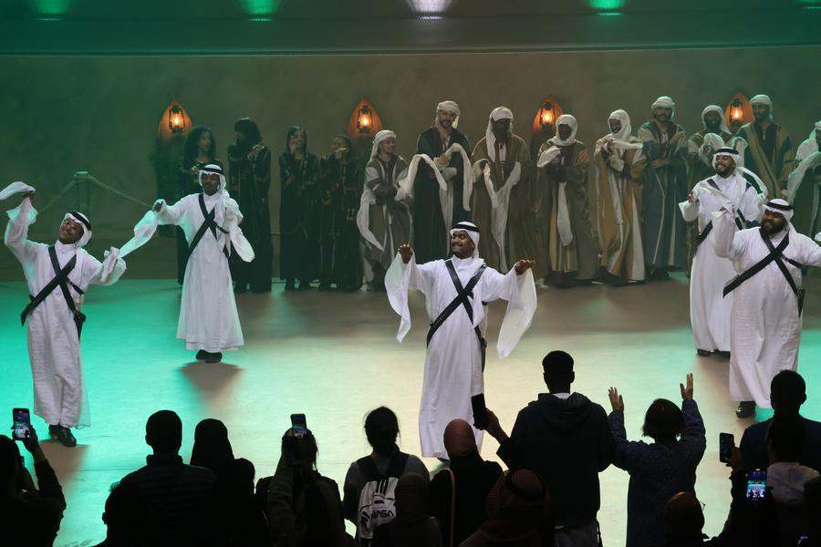 Actors perform during the "Souk Wonders" immersive show in Riyadh, Saudi Arabia, Feb. 11, 2025. (Xinhua/Wang Haizhou)