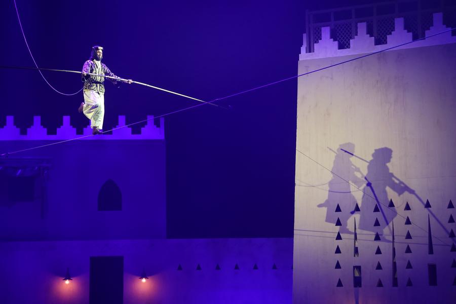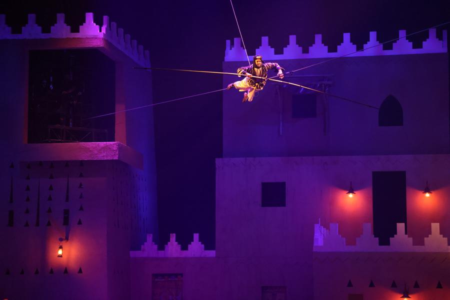 An acrobat performs during the "Souk Wonders" immersive show in Riyadh, Saudi Arabia, Feb. 11, 2025. (Xinhua/Wang Haizhou)