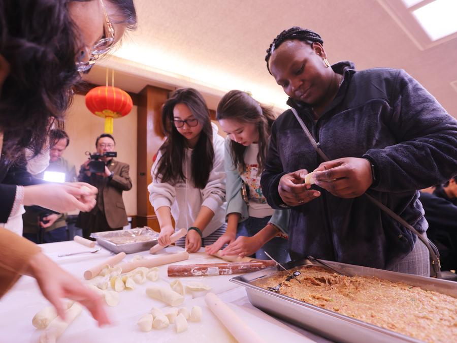 LOS ANGELES, Feb. 13 (Xinhua) -- Calligraphy, lantern-making, paper cutting, making dumplings and eating Tangyuan (glutinous rice balls) -- more than 100 American students and educators from four schools in Southern California were invited to experience Chinese culture on Wednesday at a pleasant Lantern Festival celebration hosted by the Chinese Consulate General in Los Angeles.