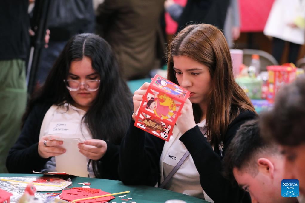LOS ANGELES, Feb. 13 (Xinhua) -- Calligraphy, lantern-making, paper cutting, making dumplings and eating Tangyuan (glutinous rice balls) -- more than 100 American students and educators from four schools in Southern California were invited to experience Chinese culture on Wednesday at a pleasant Lantern Festival celebration hosted by the Chinese Consulate General in Los Angeles.