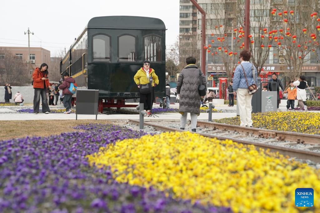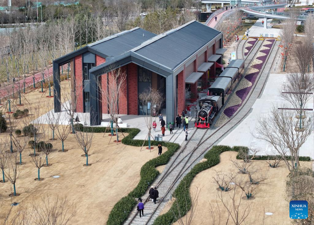 Tourists have fun at a comprehensive park in Xi'an, northwest China's Shaanxi Province, Feb. 15, 2025. Transformed from the railway remains and covering nearly 600,000 square meters, a comprehensive park has recently been open to public in Xi'an with functions including protection of remains, outdoor sport, recreation and entertainment. (Xinhua/Shao Rui)