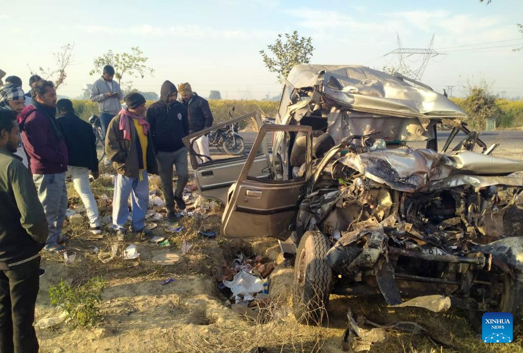 NEW DELHI, Feb. 15 (Xinhua) -- At least 14 people have died and around 27 were injured in two separate road accidents in north India, confirmed the police on Saturday.