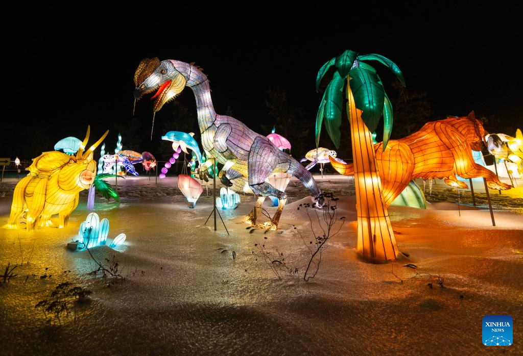Light installations are pictured during an international light show titled "Bright Nights" in Niagara-on-the-Lake, Ontario, Canada, Feb. 14, 2025. The outdoor light show is held here from Dec. 6, 2024 to March 1, 2025. (Photo by Zou Zheng/Xinhua)