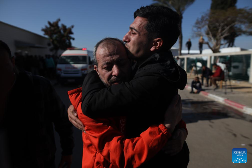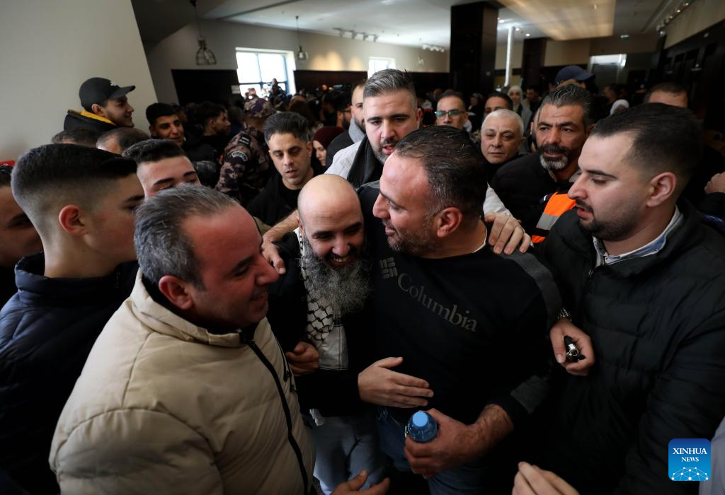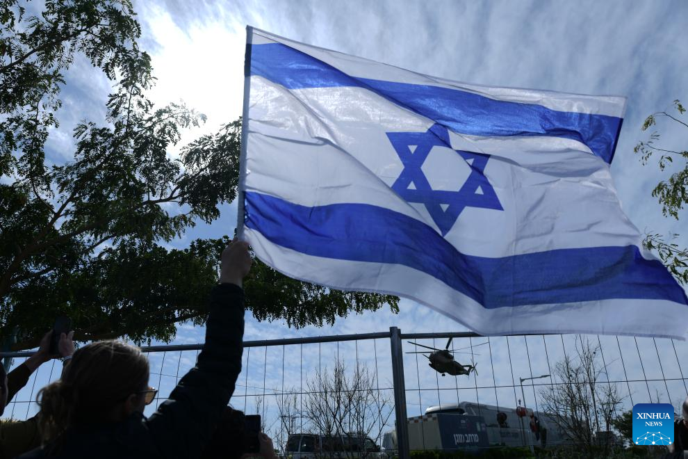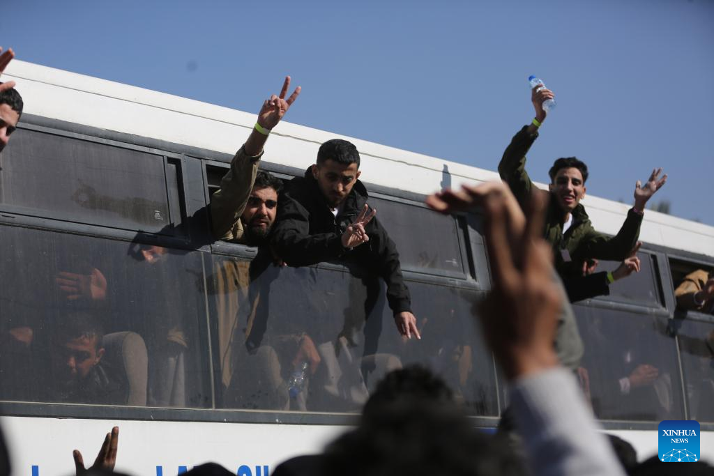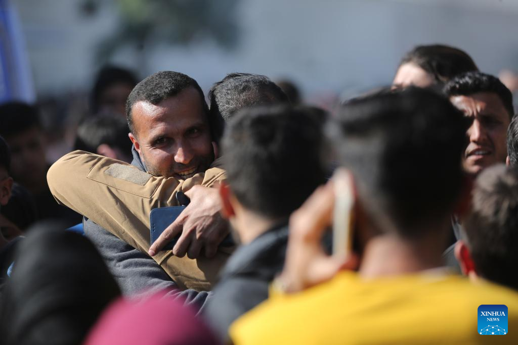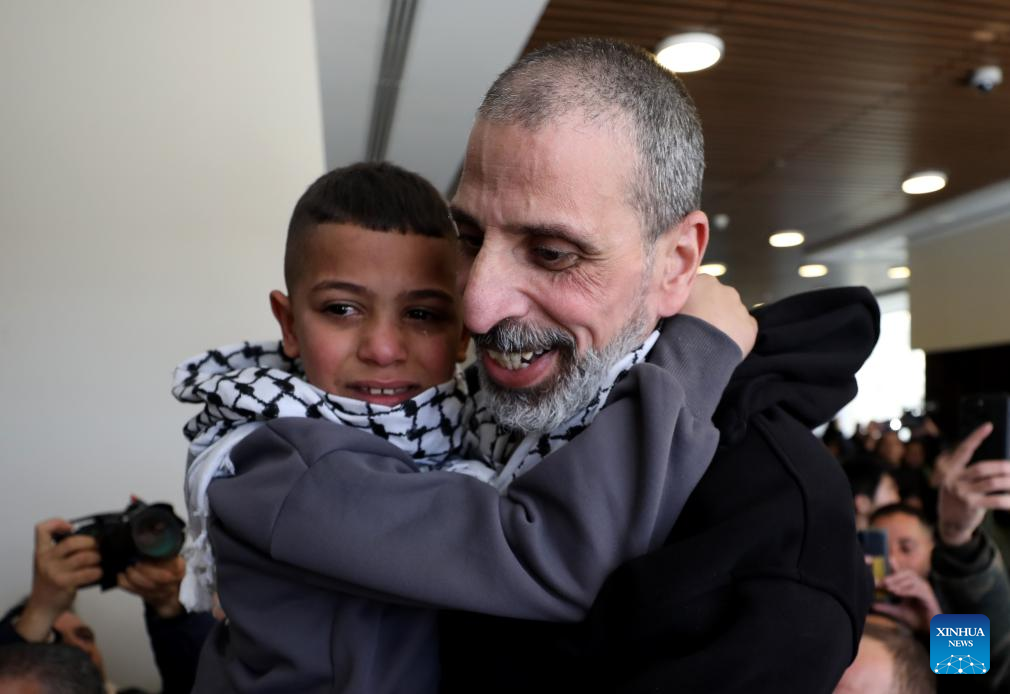 JERUSALEM/GAZA, Feb. 15 (Xinhua) -- The Palestinian militant groups on Saturday released three more Israeli hostages held in Gaza, while Israeli authorities freed 369 Palestinian prisoners and detainees in exchange.
