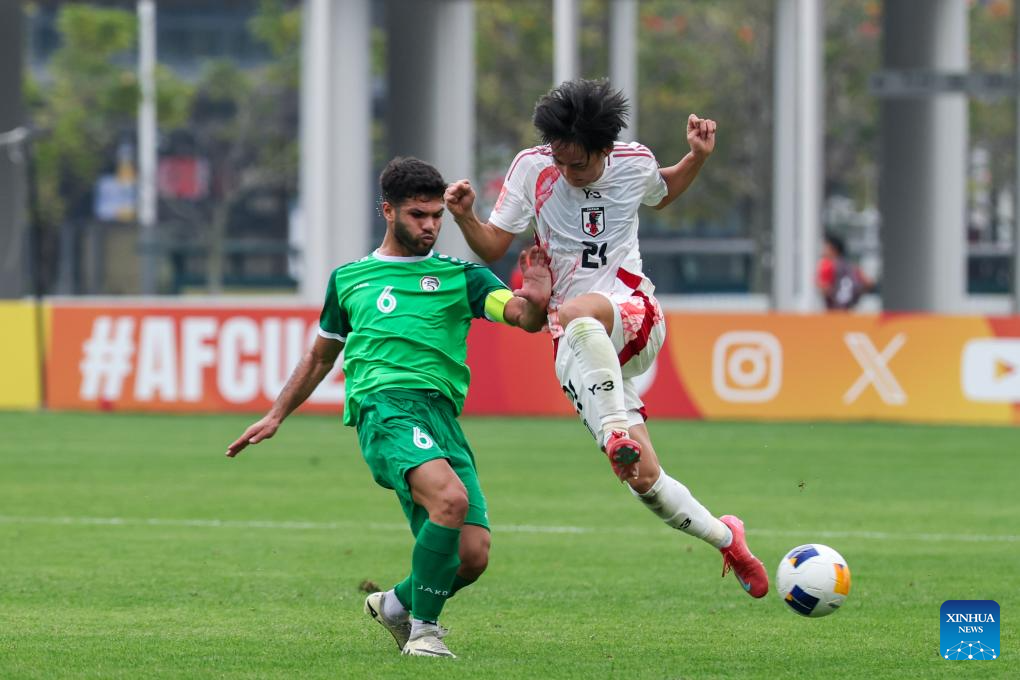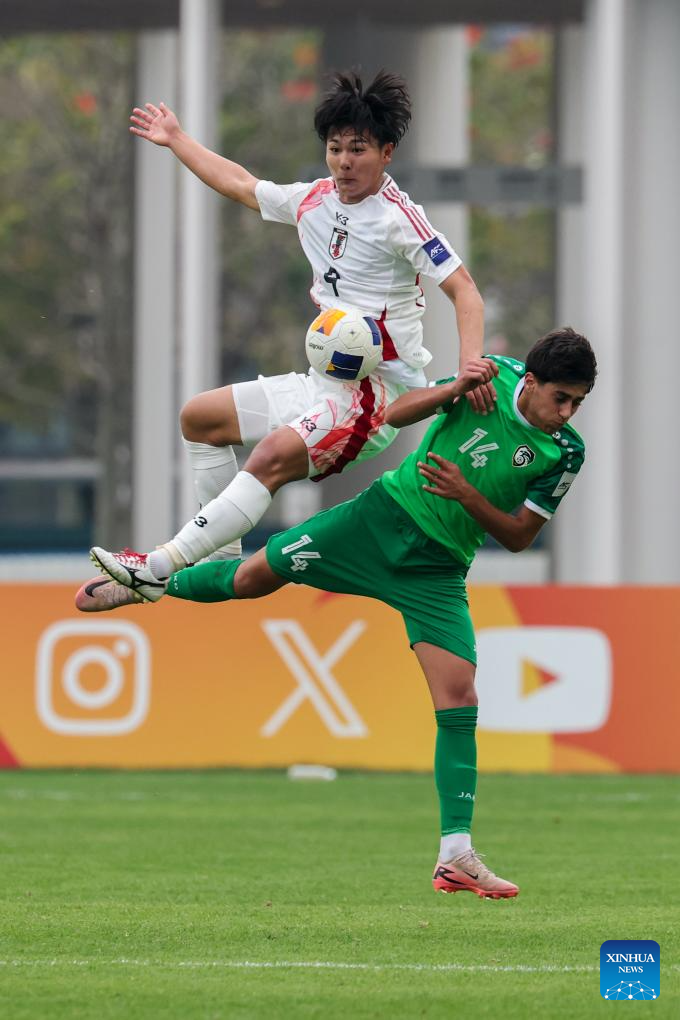 Ogura Kosei (L) of Japan vies for the ball during a Group D match between Syria and Japan at the AFC U20 Asian Cup 2025 in Shenzhen, south China's Guangdong Province, Feb.17, 2025. (Xinhua/Liang Xu)