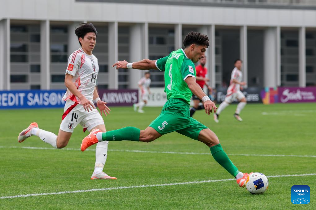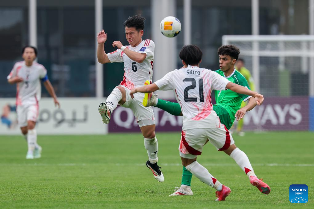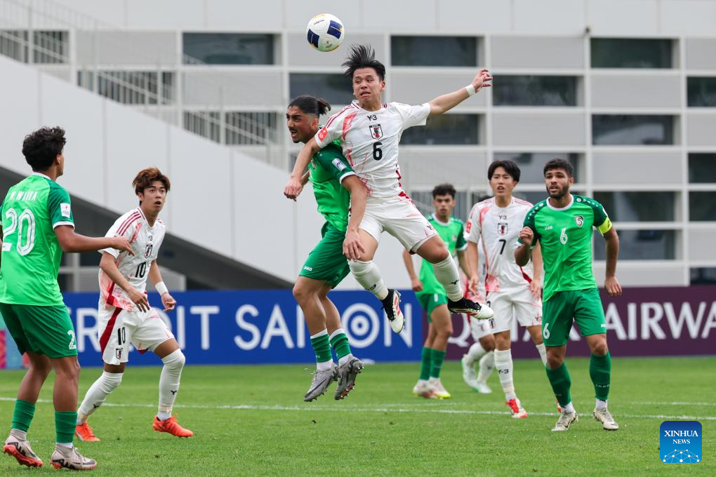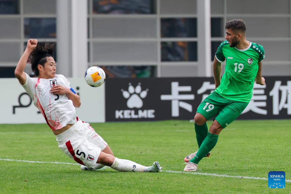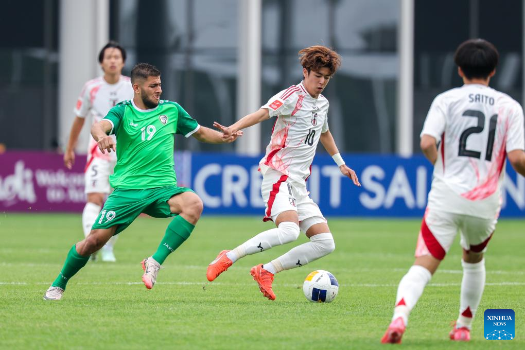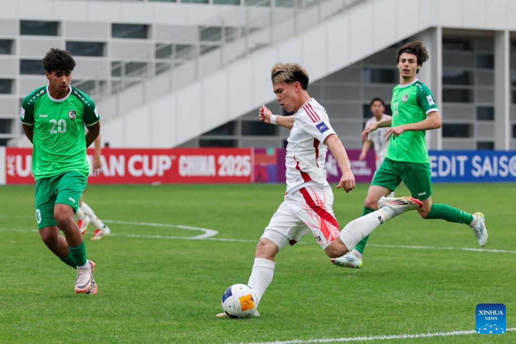 Ozeki Yuto (C) of Japan controls the ball during a Group D match between Syria and Japan at the AFC U20 Asian Cup 2025 in Shenzhen, south China's Guangdong Province, Feb.17, 2025. (Xinhua/Liang Xu)