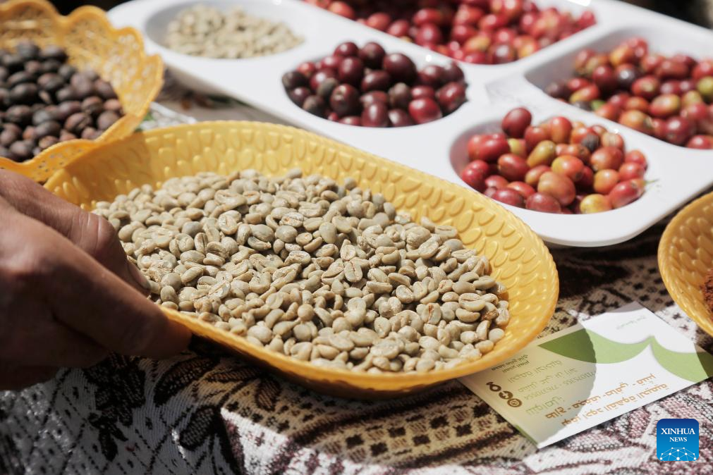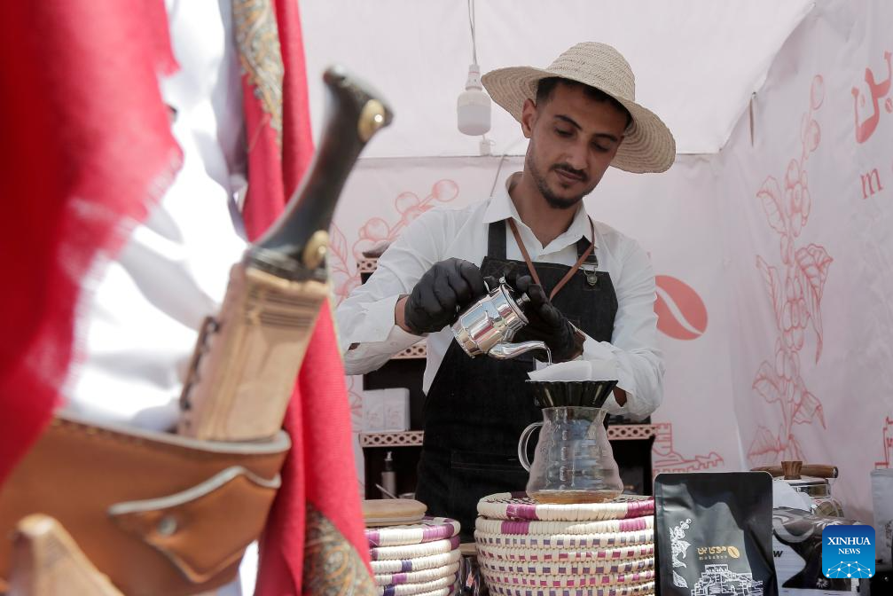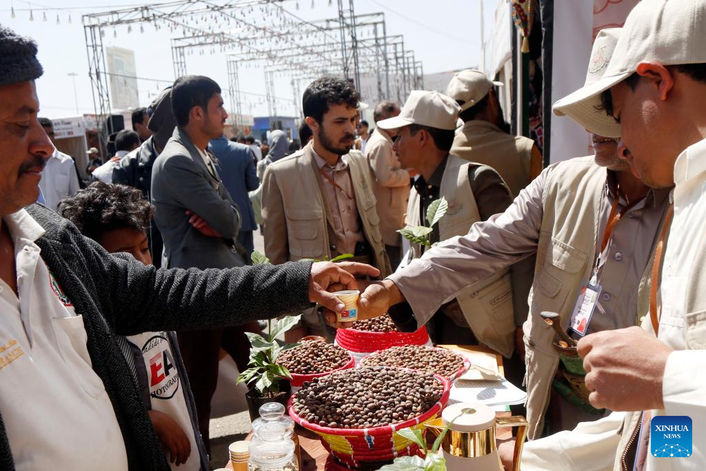 The 5-day exhibition features more than 250 local companies and associations related to coffee industry. Coffee is one of the main agricultural products in Yemen. (Photo by Mohammed Mohammed/Xinhua)