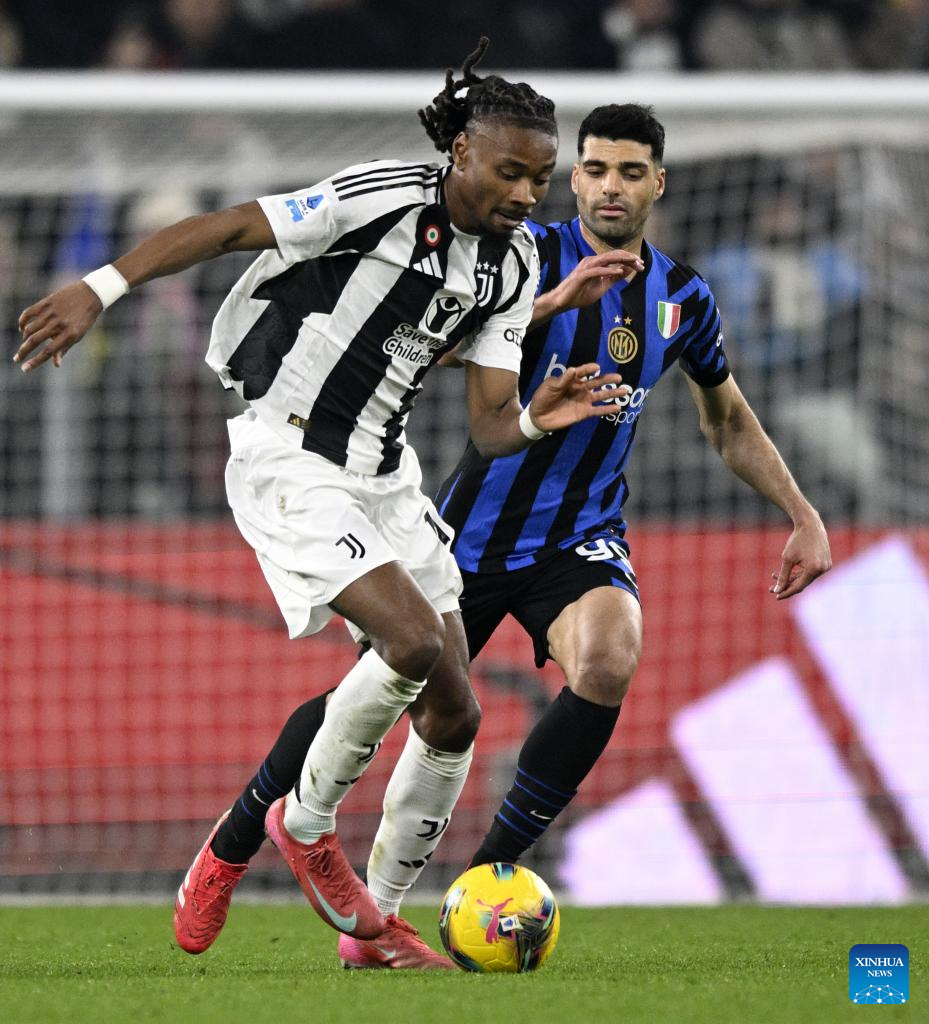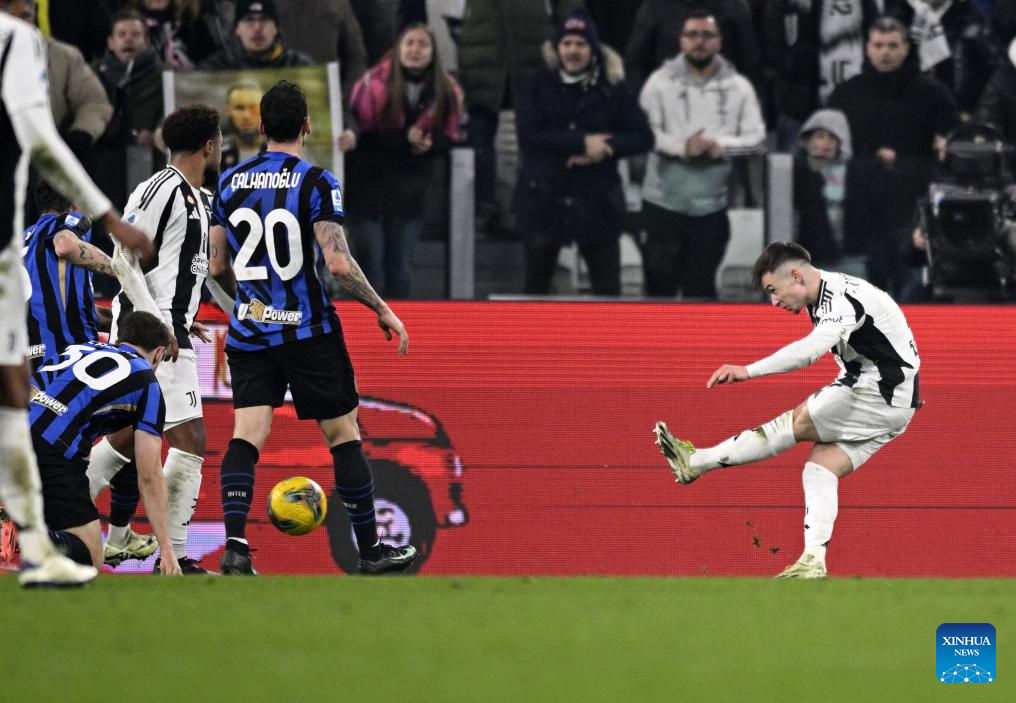 ROME, Feb. 16 (Xinhua) -- Juventus registered its fourth consecutive win in all competitions, beating Inter Milan 1-0 at the Allianz Stadium in a highly-anticipated Derby d'Italia on Sunday thanks to a late winner from Francisco Conceicao.