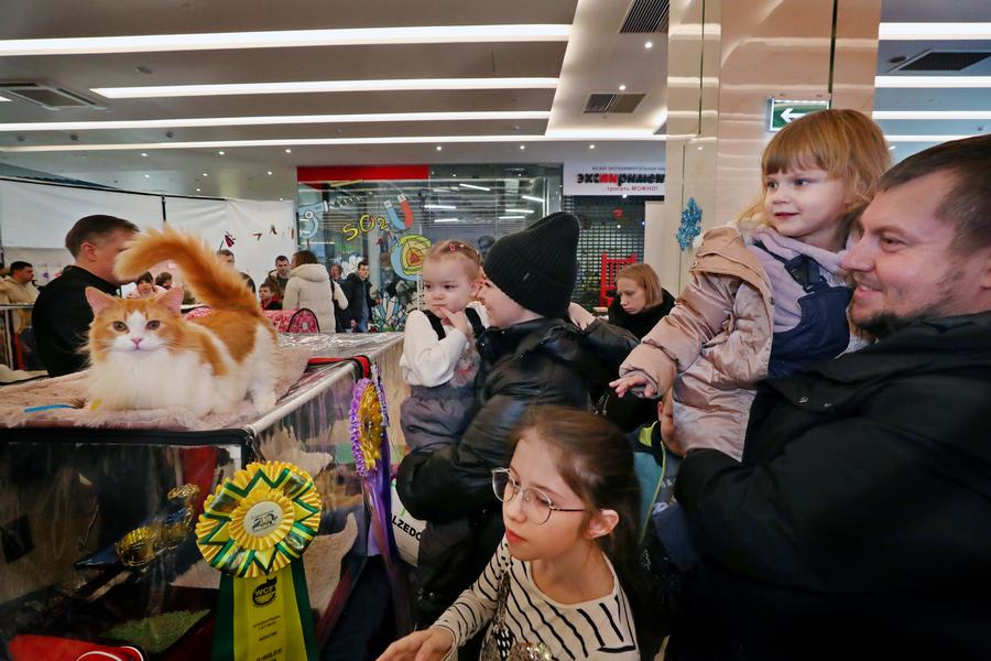 A cat is pictured during an international cat show held in Minsk, Belarus, Feb. 16, 2025. (Photo by Henadz Zhinkov/Xinhua)People visit an international cat show held in Minsk, Belarus, Feb. 16, 2025. (Photo by Henadz Zhinkov/Xinhua)A cat is pictured during an international cat show held in Minsk, Belarus, Feb. 16, 2025. (Photo by Henadz Zhinkov/Xinhua)A cat is pictured during an international cat show held in Minsk, Belarus, Feb. 16, 2025. (Photo by Henadz Zhinkov/Xinhua)A cat is pictured during an international cat show held in Minsk, Belarus, Feb. 16, 2025. (Photo by Henadz Zhinkov/Xinhua)■