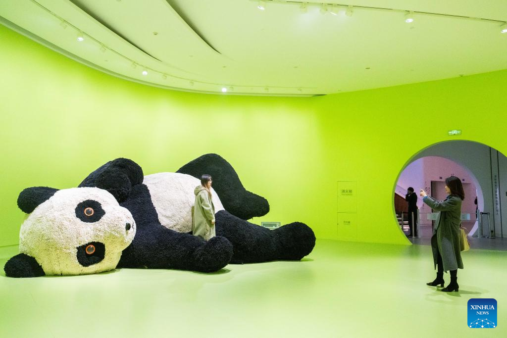 Visitors take photos with an exhibit at the MICA Art Museum in Changsha, central China's Hunan Province, Feb. 18, 2025. The MICA Art Museum officially opened today and will be fully accessible to the public from tomorrow. (Xinhua/Chen Sihan)