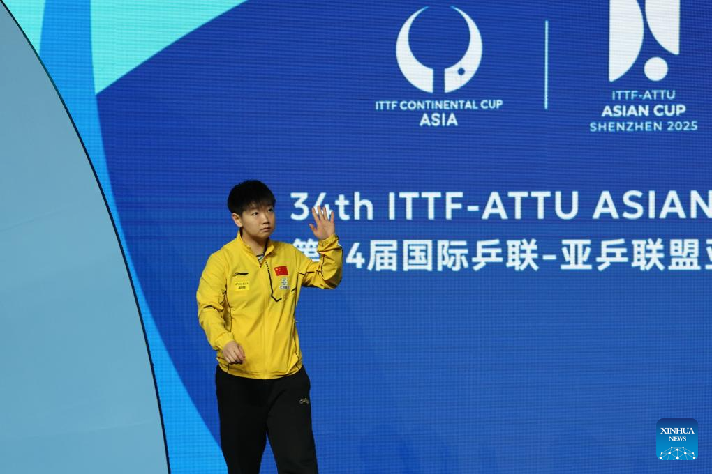 Sun Yingsha of China enters the court before the women's singles Group 1 match against Chien Tung-chuan of Chinese Taipei in Shenzhen, south China's Guangdong Province, Feb. 19, 2025. (Xinhua/Liang Xu)