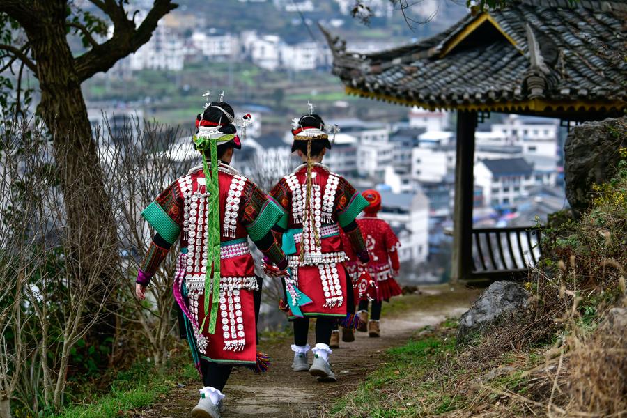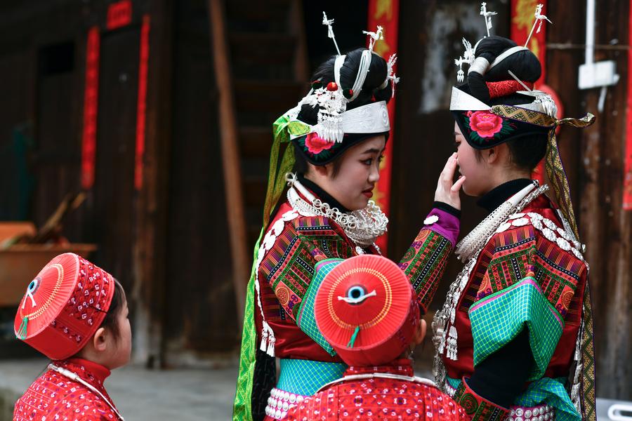 Twin sisters Yang Ningyu (1st L) and Yang Ningzhu (3rd L) are dressed to prepare for the celebration of Gannangxiang festival in Zhouxi Village, Zhouxi Town of Kaili, Qiandongnan Miao and Dong Autonomous Prefecture, southwest China's Guizhou Province, Feb. 15, 2025. (Xinhua/Yang Wenbin)This photo taken on Feb. 16, 2025 shows the scene of Gannangxiang festival celebration in Zhouxi Town of Kaili, Qiandongnan Miao and Dong Autonomous Prefecture, southwest China's Guizhou Province. (Xinhua/Yang Wenbin)Two pairs of twin sisters are on their way to participate in the celebration of Gannangxiang festival in Zhouxi Village, Zhouxi Town of Kaili, Qiandongnan Miao and Dong Autonomous Prefecture, southwest China's Guizhou Province, Feb. 15, 2025. (Xinhua/Yang Wenbin)Two pairs of twin sisters talk with their mother Wu Qian (1st R) after getting dressed for the Gannangxiang festival in Zhouxi Village, Zhouxi Town of Kaili, Qiandongnan Miao and Dong Autonomous Prefecture, southwest China's Guizhou Province, Feb. 16, 2025. (Xinhua/Yang Wenbin)An aerial drone photo taken on Feb. 16, 2025 shows the scene of Gannangxiang festival celebration in Zhouxi Town of Kaili, Qiandongnan Miao and Dong Autonomous Prefecture, southwest China's Guizhou Province. (Xinhua/Yang Wenbin)Two pairs of twin sisters are on their way to participate in the celebration of Gannangxiang festival in Zhouxi Village, Zhouxi Town of Kaili, Qiandongnan Miao and Dong Autonomous Prefecture, southwest China's Guizhou Province, Feb. 15, 2025. (Xinhua/Yang Wenbin)Two pairs of twin sisters pose for a group photo in Zhouxi Village, Zhouxi Town of Kaili, Qiandongnan Miao and Dong Autonomous Prefecture, southwest China's Guizhou Province, Feb. 15, 2025. (Xinhua/Yang Wenbin)Twin sisters Yang Ningning (L) and Yang Ningwei have fun in Zhouxi Village, Zhouxi Town of Kaili, Qiandongnan Miao and Dong Autonomous Prefecture, southwest China's Guizhou Province, Feb. 15, 2025. (Xinhua/Yang Wenbin)Twin sisters Yang Ningzhu (2nd L, middle row) and Yang Ningyu (3rd L, middle row) perform Lusheng dance in celebration of Gannangxiang festival in Zhouxi Town of Kaili, Qiandongnan Miao and Dong Autonomous Prefecture, southwest China's Guizhou Province, Feb. 15, 2025. (Xinhua/Yang Wenbin)Two pairs of twin sisters prepare to participate in the celebration of Gannangxiang festival in Zhouxi Village, Zhouxi Town of Kaili, Qiandongnan Miao and Dong Autonomous Prefecture, southwest China's Guizhou Province, Feb. 15, 2025. (Xinhua/Yang Wenbin)Twin sisters Yang Ningyu (1st L) and Yang Ningzhu (3rd L) are dressed to prepare for the celebration of Gannangxiang festival in Zhouxi Village, Zhouxi Town of Kaili, Qiandongnan Miao and Dong Autonomous Prefecture, southwest China's Guizhou Province, Feb. 15, 2025. (Xinhua/Yang Wenbin)■