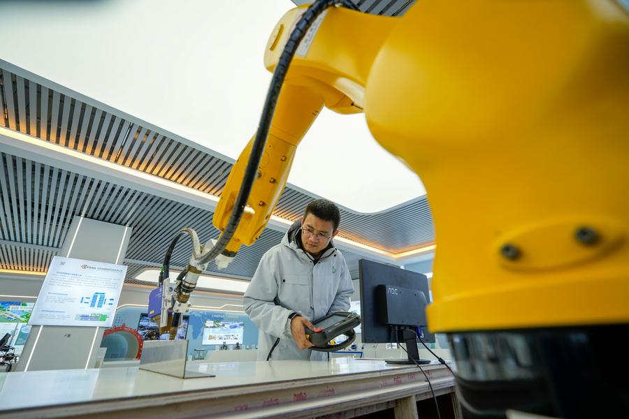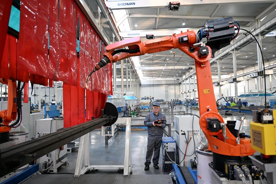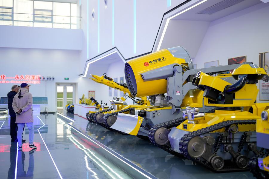 A staff member displays a robot product at a robot display and experience center in Tangshan, north China's Hebei Province, Feb. 18, 2025. (Xinhua/Mu Yu)A staff member displays a welding robot product at a robot display and experience center in Tangshan, north China's Hebei Province, Feb. 18, 2025. (Xinhua/Mu Yu)Workers maintain robot products at the workshop of CITIC HIC Kaicheng Intelligence Equipment Co., Ltd. in Tangshan National High-tech Industrial Development Zone in Tangshan, north China's Hebei Province, Feb. 18, 2025. (Xinhua/Mu Yu)Traders visit the exhibition hall of CITIC HIC Kaicheng Intelligence Equipment Co., Ltd. in Tangshan National High-tech Industrial Development Zone in Tangshan, north China's Hebei Province, Feb. 18, 2025. (Xinhua/Mu Yu)Workers process robot parts at a robotics shared intelligent manufacturing factory in Tangshan, north China's Hebei Province, Feb. 18, 2025. (Xinhua/Mu Yu)Workers test a robot product at the workshop of CITIC HIC Kaicheng Intelligence Equipment Co., Ltd. in Tangshan National High-tech Industrial Development Zone in Tangshan, north China's Hebei Province, Feb. 18, 2025. (Xinhua/Mu Yu)A worker tests a robot product at a robotics shared intelligent manufacturing factory in Tangshan, north China's Hebei Province, Feb. 18, 2025. (Xinhua/Mu Yu)■