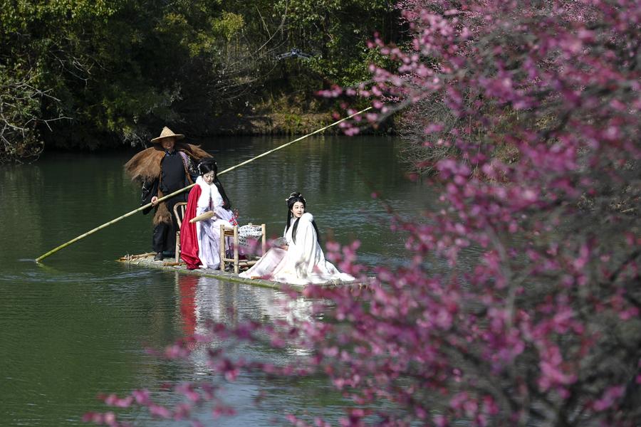Participants visit a booth during a dialogue on promoting people-to-people and cultural exchanges between media organizations and think tanks of China and Japan held in Tokyo, Japan, Feb. 18, 2025. The event, co-hosted by Xinhua News Agency and the Chinese Embassy in Japan, brought together about 160 participants, including representatives of media organizations, think tanks and friendly groups from the two countries. At Tuesday's event, Xinhua issued a think tank report titled "Promoting the Development and Progress of Human Civilization through Exchange and Mutual Learning." (Xinhua)The helicopter airborne magnetotelluric detection system works in Hetian, northwest China's Xinjiang Uygur Autonomous Region, Jan. 10, 2025. China's first helicopter airborne magnetotelluric detection system has been successfully applied to a plateau railway construction project, the Chinese Academy of Sciences' Aerospace Information Research Institute (AIR) said on Tuesday. (Photo by Guo Feng/Xinhua)Tourists from Laos and Thailand pose for photos in front of the Xishuangbanna railway station in Jinghong City, Xishuangbanna Dai Autonomous Prefecture, southwest China's Yunnan Province, Feb. 18, 2025. After entering through Mohan Port, a tourist group of 15 people from Laos and Thailand took a train and arrived in Jinghong City, Xishuangbanna Dai Autonomous Prefecture on Tuesday. It was the first tourist group to arrive since the implementation of the visa-free policy allowing tourist groups from ASEAN (the Association of Southeast Asian Nations) countries to enter Xishuangbanna. (Xinhua/Chen Xinbo)Two pairs of twin sisters pose for a group photo in Zhouxi Village, Zhouxi Town of Kaili, Qiandongnan Miao and Dong Autonomous Prefecture, southwest China's Guizhou Province, Feb. 15, 2025. Donning in traditional attire, accompanied by the melody of Lusheng, a traditional musical instrument, local people in Kaili rejoiced the annual Gannangxiang festival in Zhouxi Town of Kaili. Every year during the festival, two pairs of twin sisters of Miao ethnic group, Yang Ningzhu and Yang Ningyu, Yang Ningwei and Yang Ningning, together with their mother Wu Qian, will come back from downtown Kaili to their grandmother's house in rural Miao village to attend this grand event. They believe that this is the best way to inherit ethnic culture. With a history of more than 400 years, the festival is inscribed on the list of provincial intangible cultural heritage of Guizhou. (Xinhua/Yang Wenbin)People walk past posters of the Chinese animated film "Ne Zha 2" at a shopping mall in Shenyang, northeast China's Liaoning Province, Feb. 18, 2025. Chinese animated blockbuster "Ne Zha 2" has dethroned Disney's 2024 picture "Inside Out 2" to become the highest-grossing animated movie of all time globally. (Xinhua/Li Gang)People in traditional costumes enjoy plum blossoms while riding a bamboo raft at the Xixi National Wetland Park in Hangzhou, east China's Zhejiang Province, Feb. 18, 2025. The Xixi wetland in Hangzhou has entered the best season for viewing plum blossoms. (Xinhua/Huang Zongzhi)People view a life-size LEGO Technic McLaren P1 supercar (L) at the 2025 Canadian International AutoShow in Toronto, Canada, Feb. 18, 2025. Consisting of 342,817 LEGO Technic elements, a life-size model of McLaren P1 supercar is on display at the annual 10-day show starting from Feb. 14. (Photo by Zou Zheng/Xinhua)Israeli forces take security measures as Israeli army bulldozers demolish houses belonging to Palestinians in the Masafer Yatta district, south of the West Bank city of Hebron, on Feb. 18, 2025. (Photo by Mamoun Wazwaz/Xinhua)This photo taken on Feb. 17, 2025 shows law enforcers processing arrested illegal foreign entrants in Myawady township of Kayin State, Myanmar. (Some faces are blurred for privacy protection.) Myanmar authorities on Monday arrested 273 foreign nationals who had illegally entered the country in Myawaddy township of Kayin state, the Information Team of Myanmar's State Administration Council said. A total of 1,303 foreign nationals were arrested for illegally entering Myanmar from Jan. 30 to Monday, the team said. (Information Team of Myanmar's State Administration Council/Handout via Xinhua)Kuai Jiwen (2nd L) of China shoots to score during the Group A match between China and Australia at the AFC U20 Asian Cup football tournament in Shenzhen, south China's Guangdong Province, Feb. 18, 2025. Australia scored two goals in two minutes to upset host China 2-1 in here on Tuesday, winning the group A of U20 AFC Cup. (Xinhua/Xin Yuewei)■