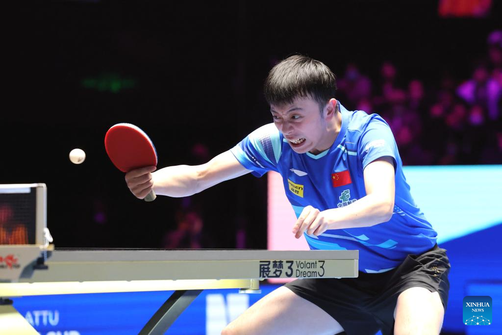 Chen Yuanyu of China hits a return during the men's singles group 7 match against Izaac Quek of Singapore at the 34th ITTF-ATTU Asian Cup table tennis tournament in Shenzhen, south China's Guangdong Province, Feb. 19, 2025. (Xinhua/Liang Xu)