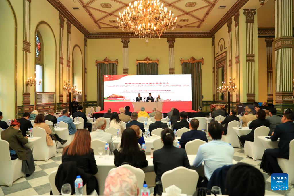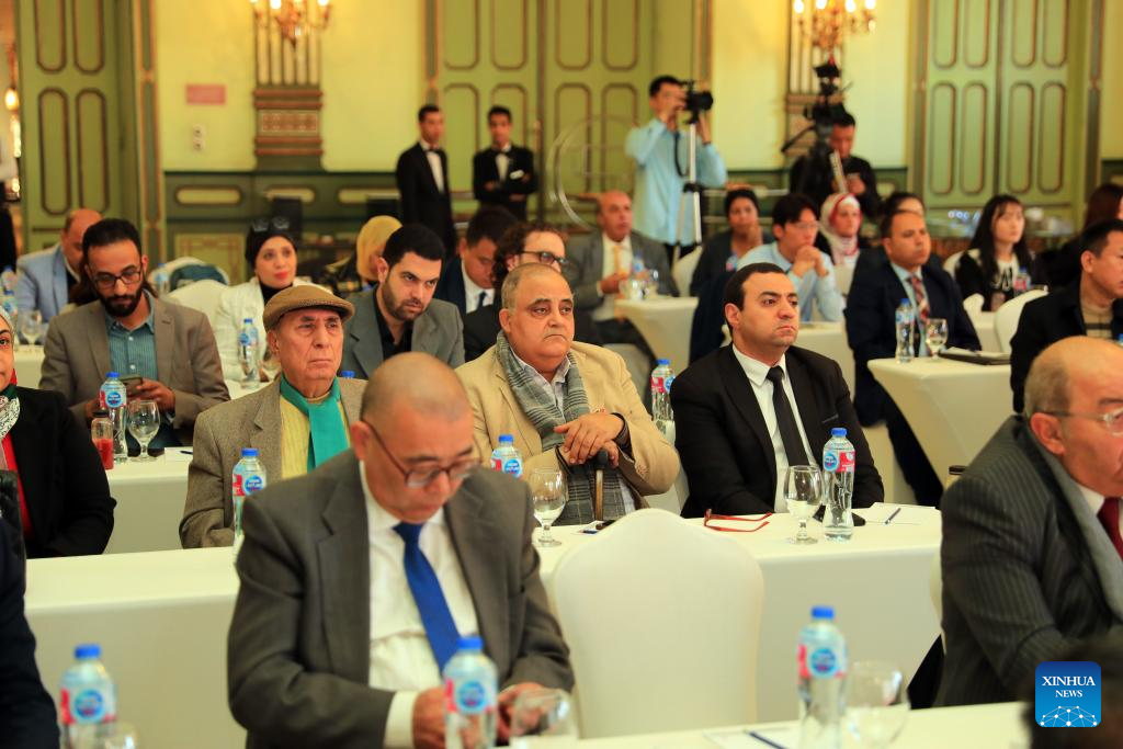 A conference introducing the economic and social development in northwest China's Xinjiang Uygur Autonomous Region is held in Cairo, Egypt, Feb. 18, 2025. Egyptian and Chinese experts convened here on Tuesday to discuss the economic and social development in northwest China's Xinjiang Uygur Autonomous Region.