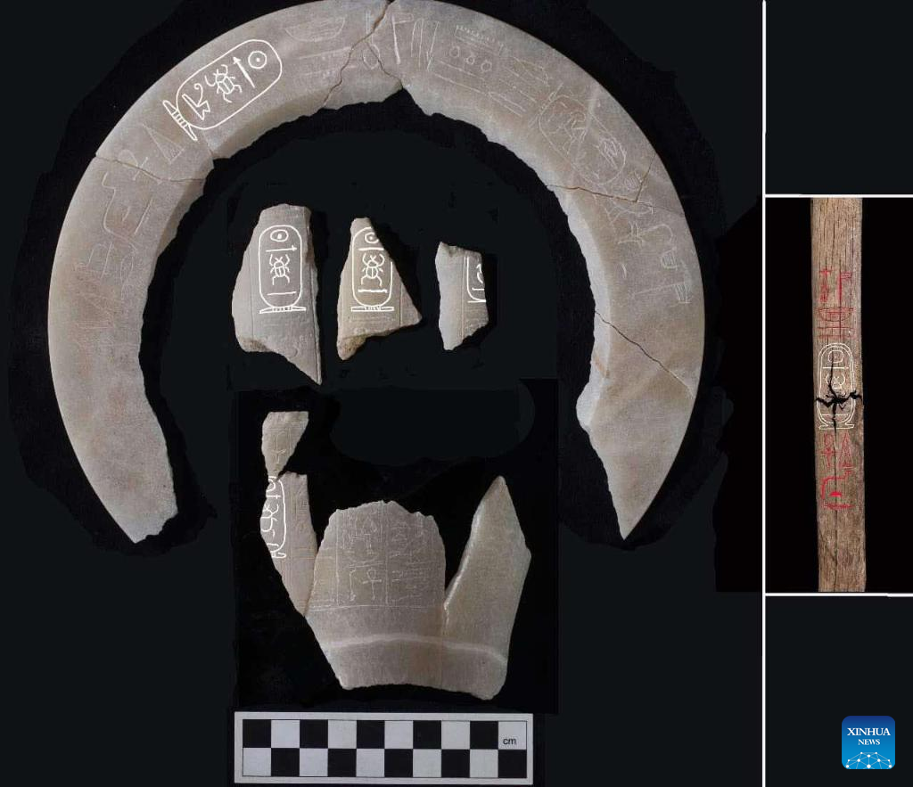 This combo image shows artifacts unearthed from the tomb of Pharaoh Thutmose II in the Theban mountain region west of Luxor, Egypt. Egypt has identified the tomb of Pharaoh Thutmose II, the last lost royal tomb of the kings of the 18th Dynasty, in the Theban mountain region west of Luxor, the Egyptian Ministry of Tourism and Antiquities announced. It marks the first discovery of a royal tomb since King Tutankhamun's tomb was unearthed in 1922, the ministry said in a statement on Feb. 18, 2025. (Egyptian Ministry of Tourism and Antiquities/Handout via Xinhua)