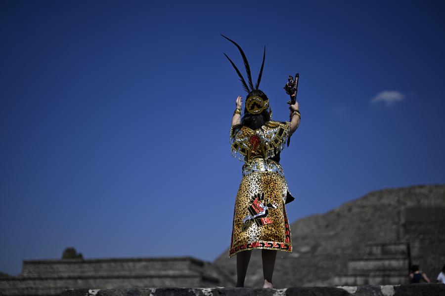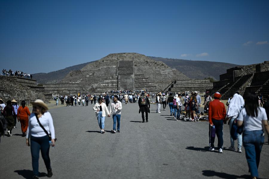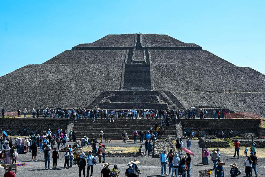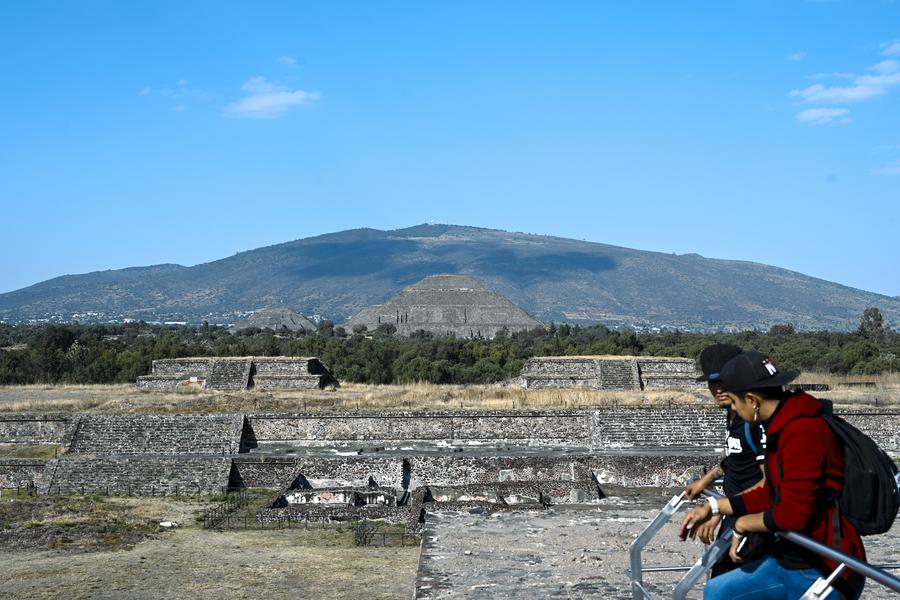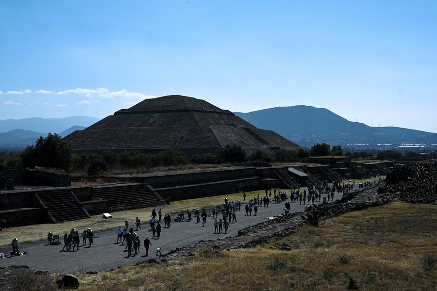 MEXICO CITY, Feb. 20 (Xinhua) -- The ancient ruins of Teotihuacan are located in central Mexico, about 40 kilometers from Mexico City. As a world-renowned tourist destination, it was designated a UNESCO World Heritage Site in 1987. The site's structures are laid out according to geometric and symbolic principles, featuring a grand and imposing scale. Among its most famous landmarks are the Pyramid of the Sun and the Pyramid of the Moon.