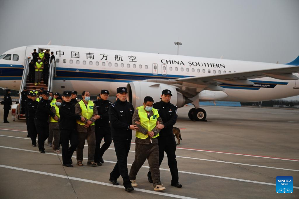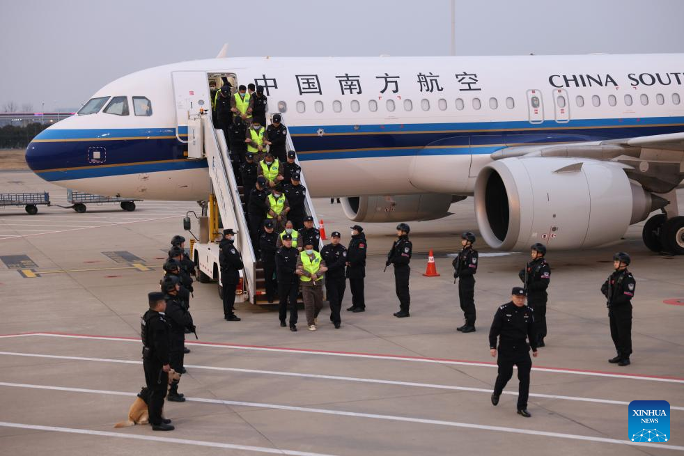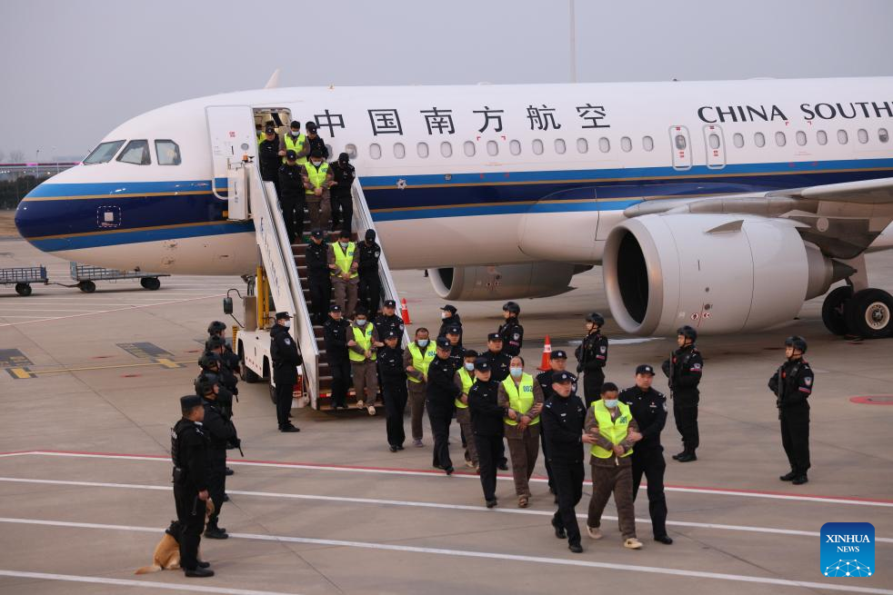 The repatriation of these suspects marks a significant achievement of law enforcement cooperation between China, Myanmar and Thailand against telecom fraud, according to a statement by the Ministry of Public Security. (Xinhua/Ji Chunpeng)
