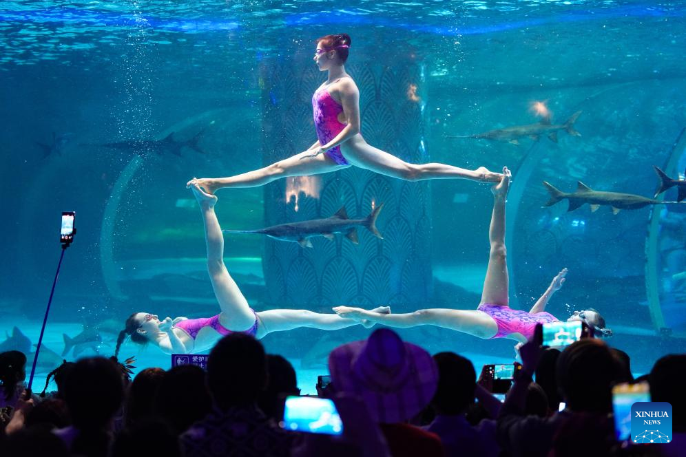 Actors stage an under-water performance at a scenic spot in Xishuangbanna, southwest China's Yunnan Province, Feb. 19, 2025. (Xinhua/Chen Xinbo)