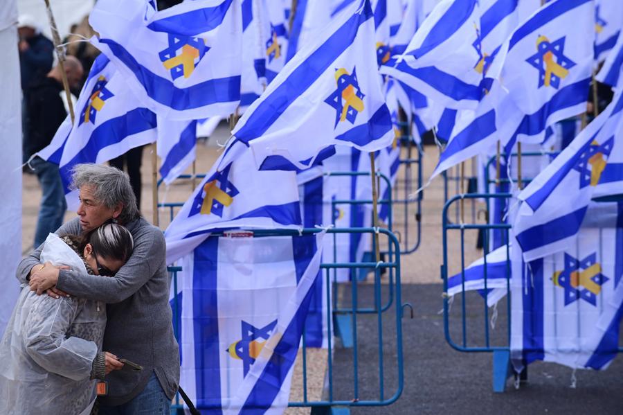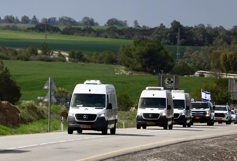 JERUSALEM, Feb. 20 (Xinhua) -- Israel announced on Thursday that the body of Oded Lifshitz, one of the oldest hostages in Gaza, had been identified after being released earlier in the day by Hamas, along with the bodies of a mother and her two sons.