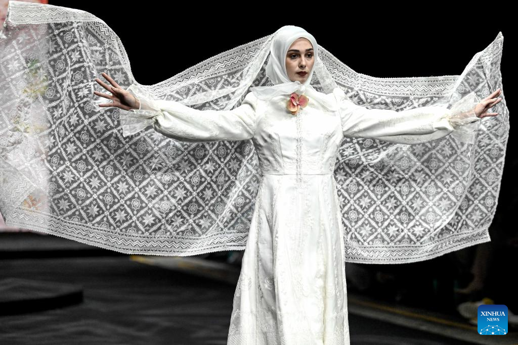 Models present creations during a fashion show in Jakarta, Indonesia, Feb. 20, 2025. (Xinhua/Agung Kuncahya B.)
