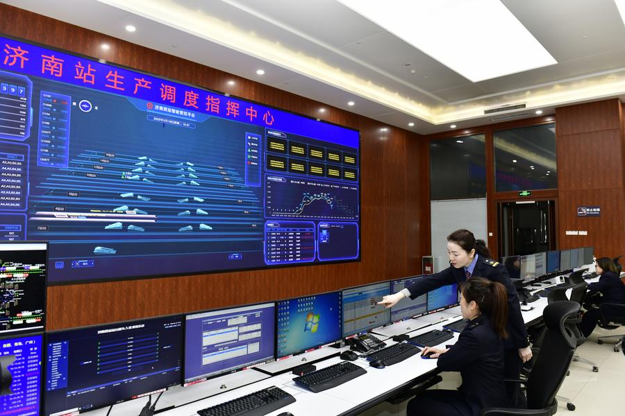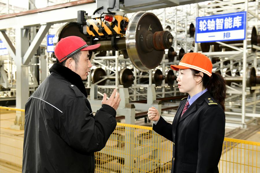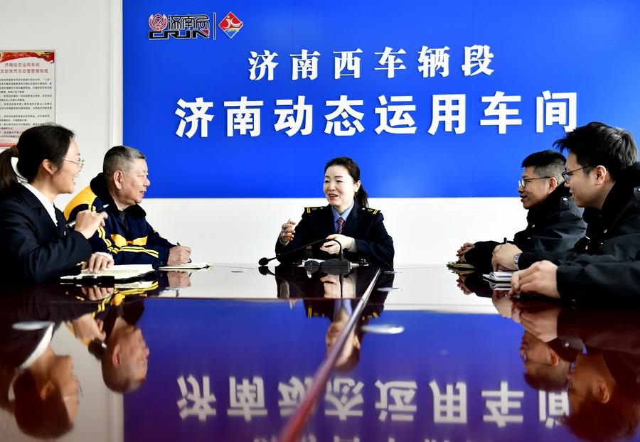 Shao Lili (R) conducts a survey on digital and intelligent railway construction at the production and dispatch command center of Jinan Railway Station in Jinan, east China's Shandong Province, Feb. 18, 2025. (Xinhua/Guo Xulei)Shao Lili (R) discusses the digital and intelligent maintenance of train wheel axles with Zhao Wei, a technical assistant, at a train depot in Jinan, east China's Shandong Province, Feb. 18, 2025. (Xinhua/Guo Xulei)Shao Lili (L) learns about the maintenance of passenger train wheels at a train depot in Jinan, east China's Shandong Province, Feb. 18, 2025. (Xinhua/Guo Xulei)■