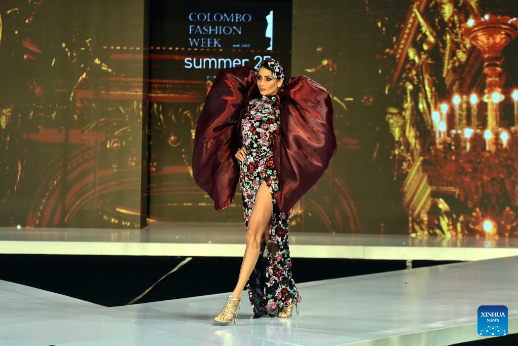 A model presents a creation during the Colombo Fashion Week in Colombo, Sri Lanka, Feb. 20, 2025. The event kicked off here on Wednesday. (Photo by Gayan Sameera/Xinhua)
