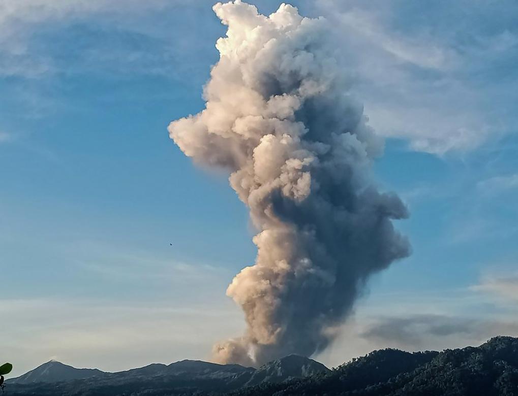 The volcano, situated on Halmahera Island, spewed a column of ash up to 2,000 meters into the sky. Thick white-to-grey clouds drifted south of the crater.