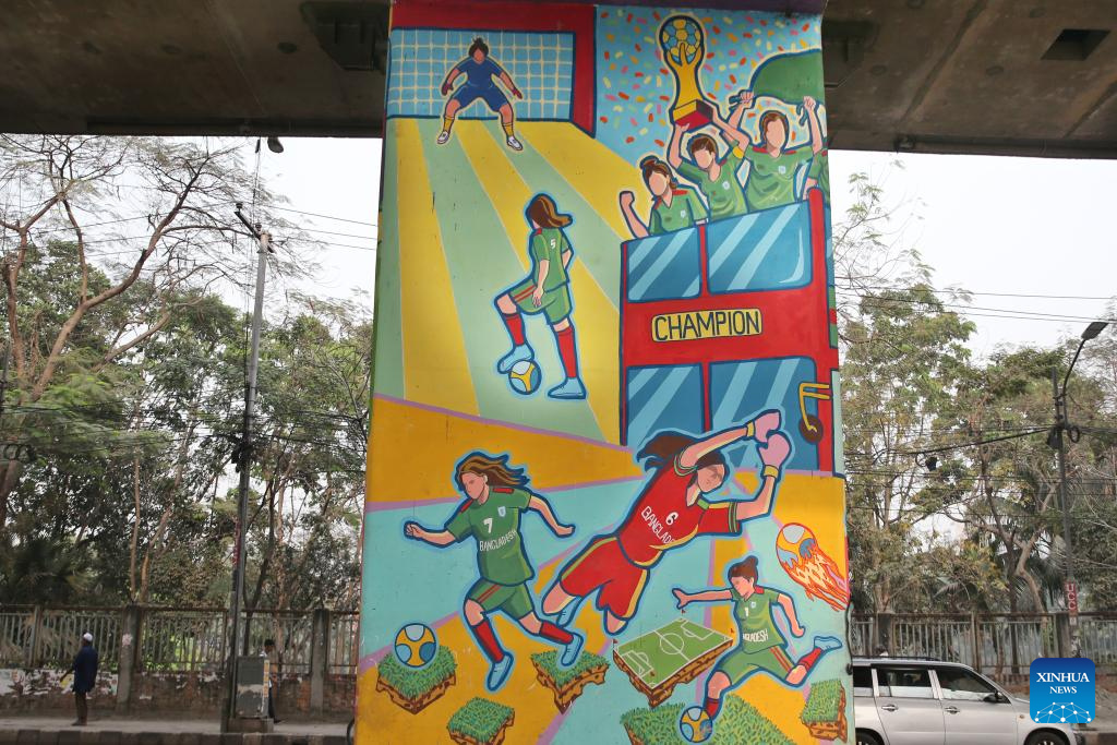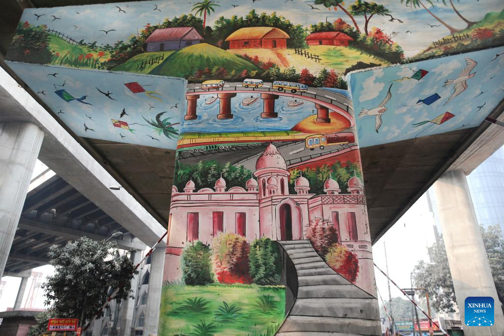 This photo taken on Feb. 19, 2025 shows graffiti in the street of Dhaka, Bangladesh. (Photo by Habibur Rahman/Xinhua)