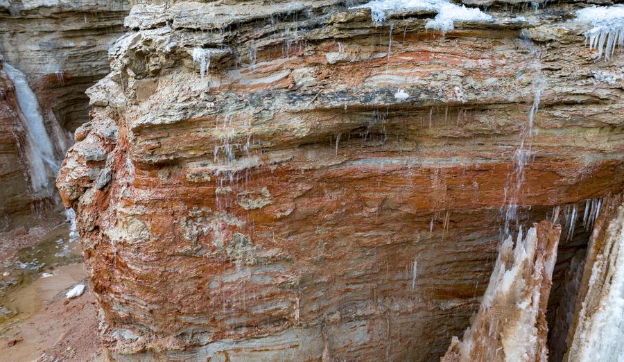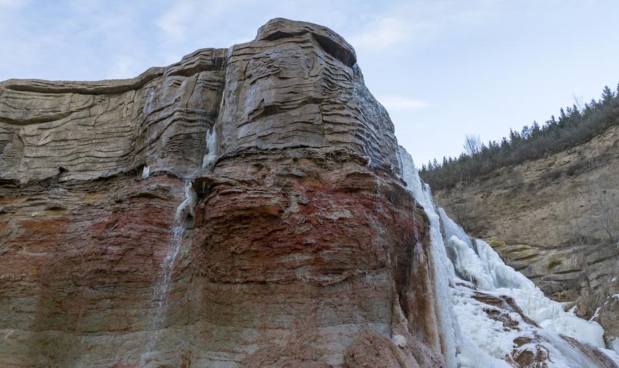 GUYUAN, Feb. 22 (Xinhua) --As the temperature rises, melting ice adds a unique charm to the Ruhe waterfall in Pengyang County, Guyuan City of northwest China's Ningxia Hui Autonomous Region.