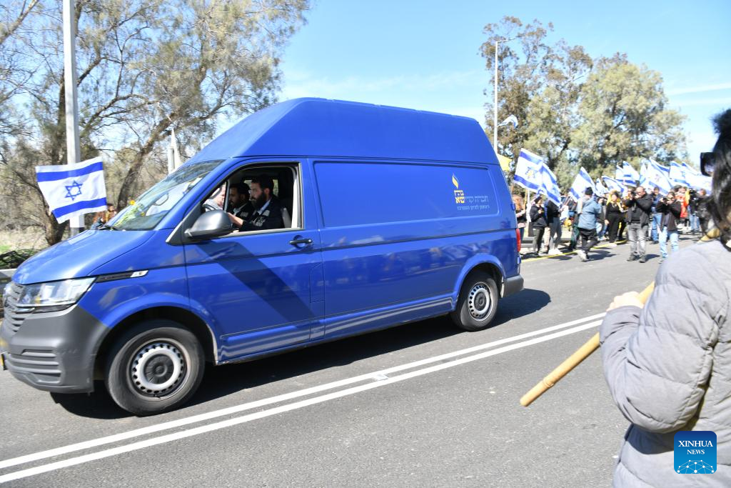 JERUSALEM, Feb. 22 (Xinhua) -- The body of Israeli hostage Shiri Bibas, which was handed over to Israel on Friday night by Hamas via the International Committee of the Red Cross (ICRC) in Gaza, was confirmed by forensic analysis, Israel's state-owned Kan TV News and other leading media outlets reported on Saturday.