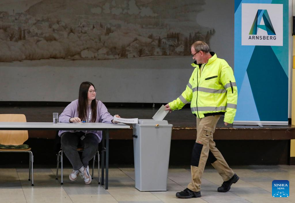 A voter casts his ballot at a polling station in Arnsberg, Germany, Feb. 23, 2025. German voters went to polls Sunday to decide the composition of the next Bundestag, the country's lower house of parliament. (Xinhua/Zhang Fan)