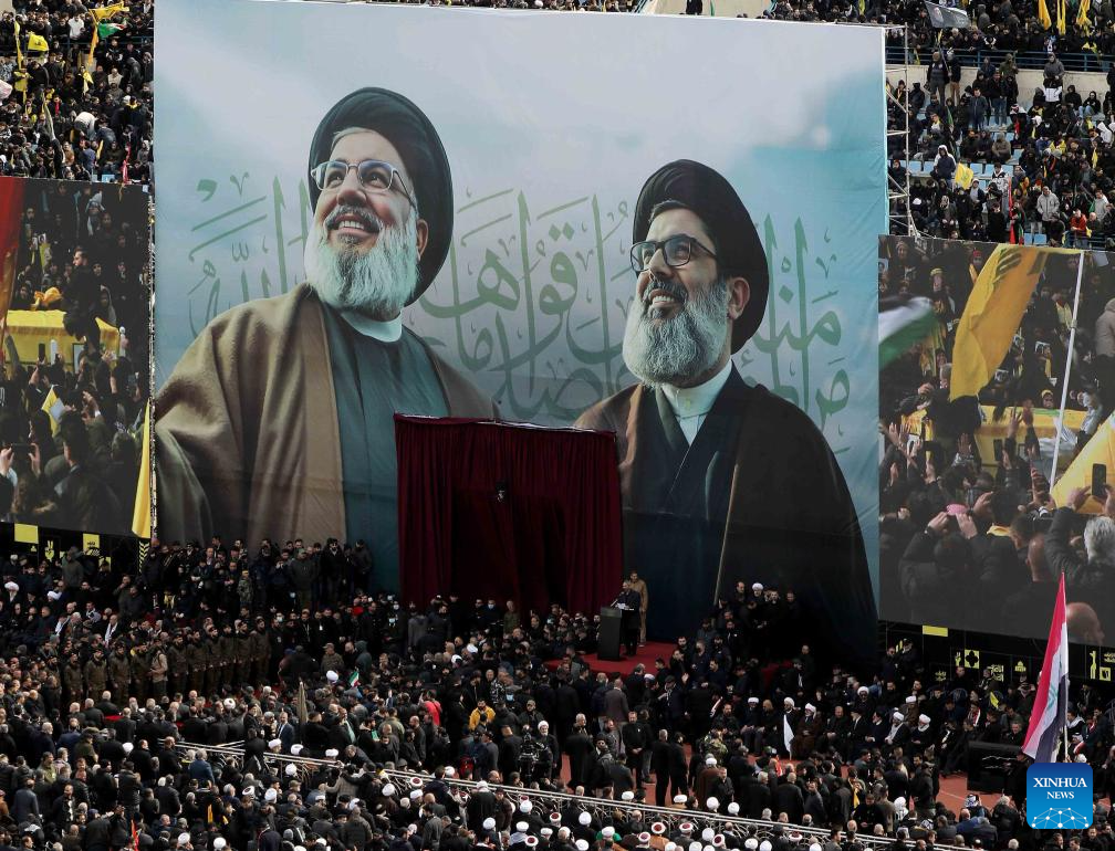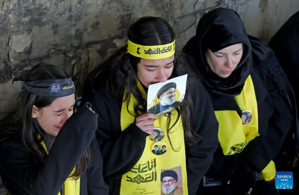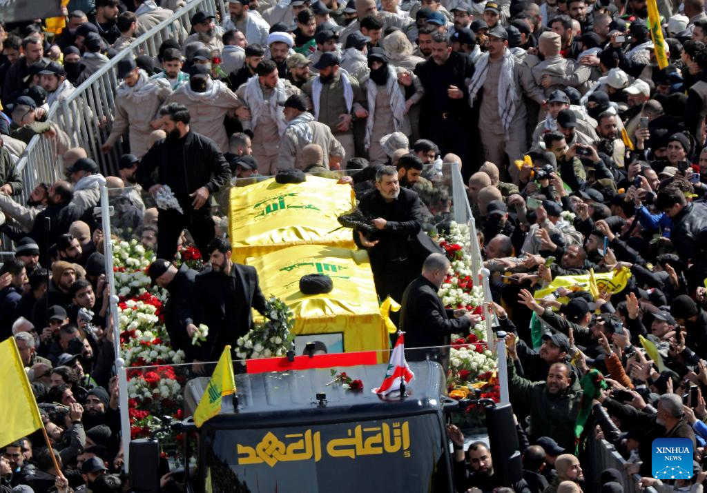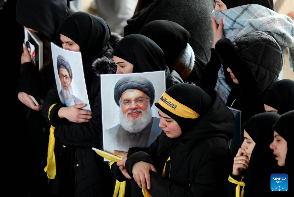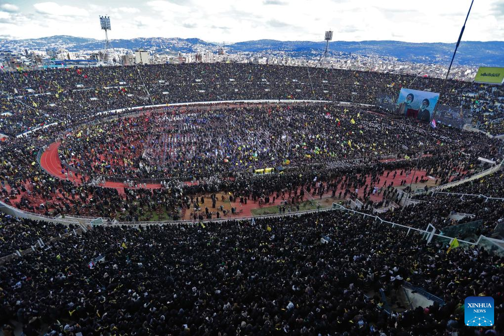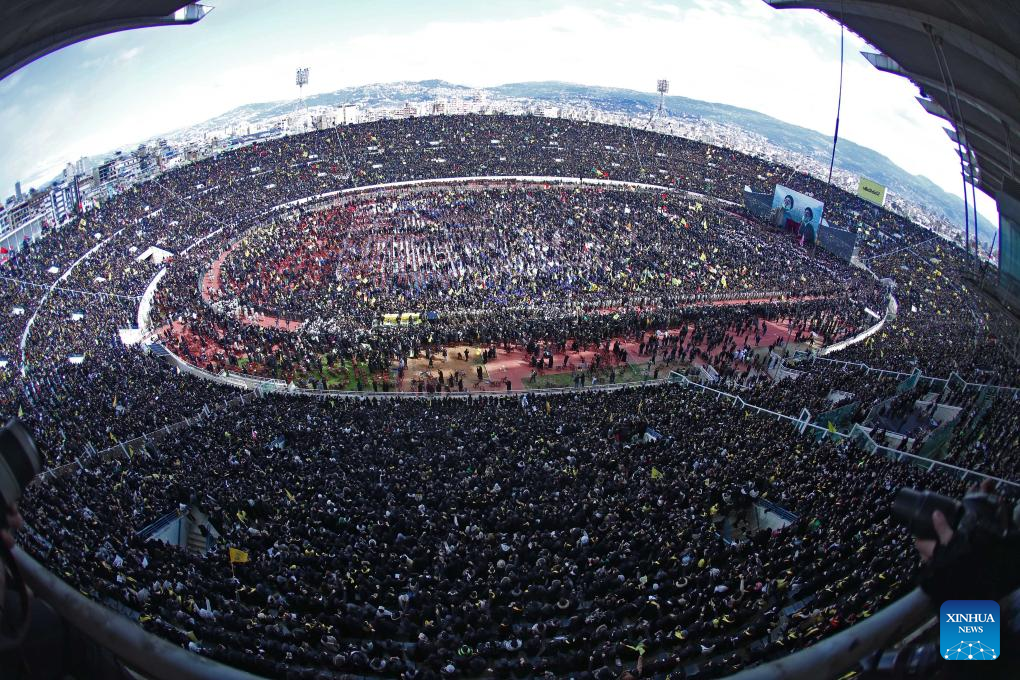 BEIRUT/TEHRAN, Feb. 23 (Xinhua) -- Tens of thousands of mourners gathered in Beirut on Sunday for the funeral of former Hezbollah leaders Hassan Nasrallah and Hashem Safieddine, as Israeli warplanes conducted low-altitude flights over the Lebanese capital.