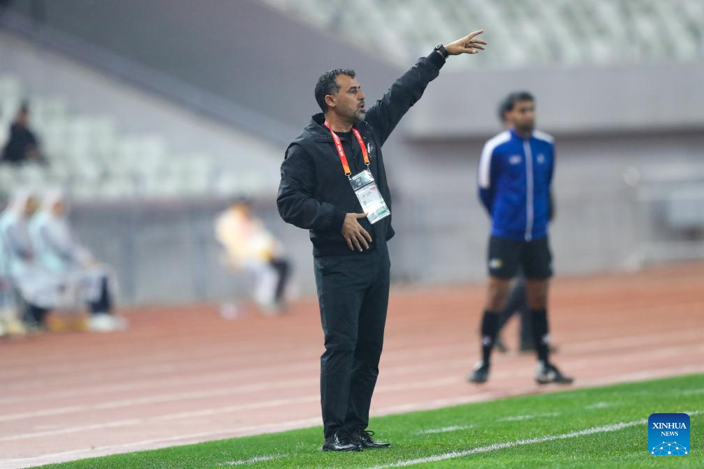 Iraq's head coach Emad Mohammed instructs during the quarterfinal between Australia and Iraq at the AFC U20 Asian Cup football tournament in Shenzhen, south China's Guangdong Province, Feb. 22, 2025. (Xinhua/Li Xulun)