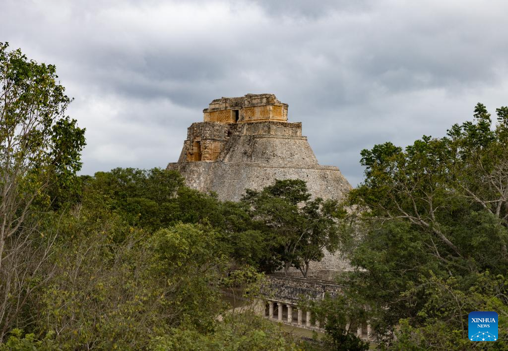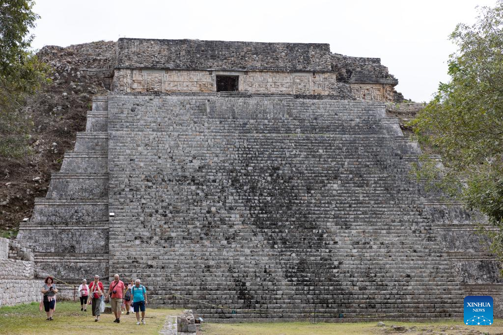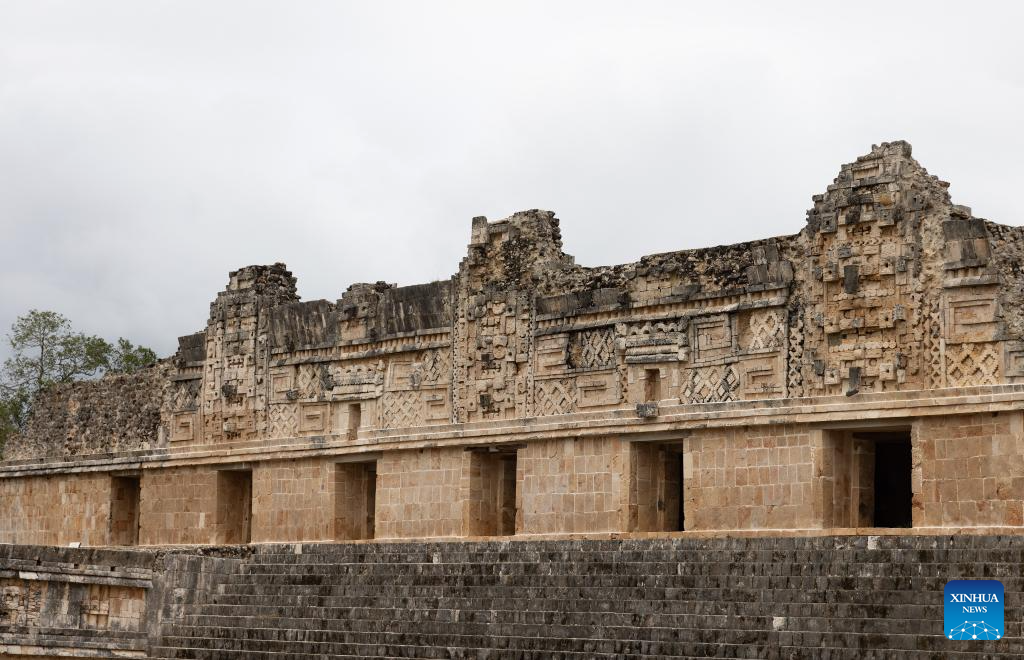 This photo taken on Feb. 21, 2025 shows the Uxmal archaeological site in Yucatan, Mexico. The Puuc Route (Ruta Puuc) is located in Mexico's Yucatan state and is a route connecting several Mayan archaeological sites including Uxmal, Kabah and Labna. (Xinhua/Li Mengxin)