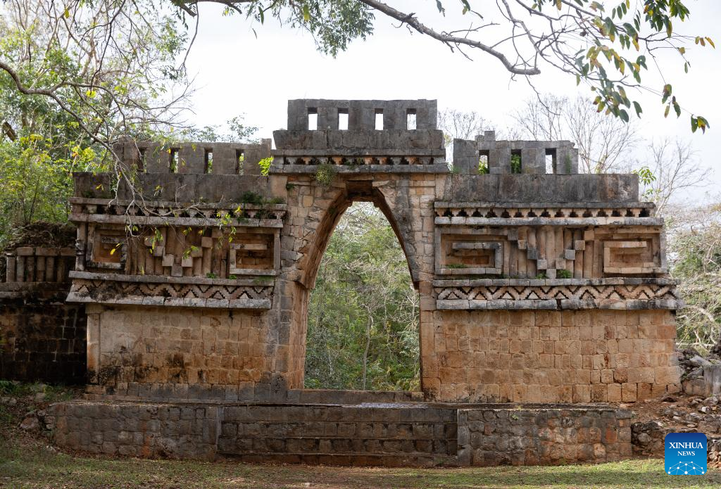 This photo taken on Feb. 21, 2025 shows the Labna archaeological site in Yucatan, Mexico. The Puuc Route (Ruta Puuc) is located in Mexico's Yucatan state and is a route connecting several Mayan archaeological sites including Uxmal, Kabah and Labna. (Xinhua/Li Mengxin)