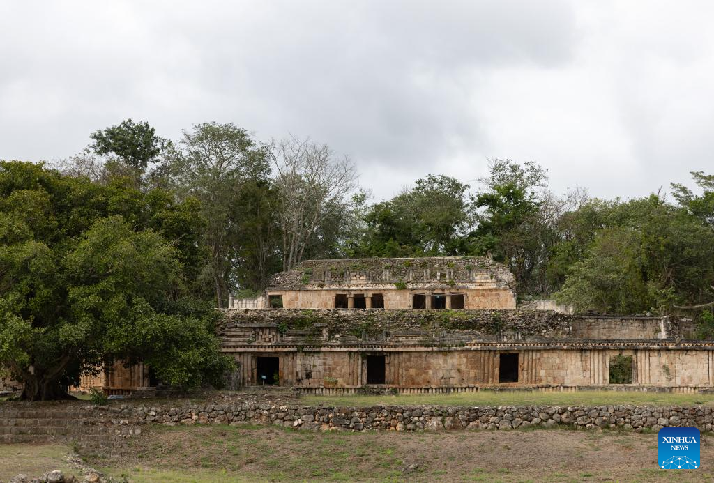 This photo taken on Feb. 21, 2025 shows the Kabah archaeological site in Yucatan, Mexico. The Puuc Route (Ruta Puuc) is located in Mexico's Yucatan state and is a route connecting several Mayan archaeological sites including Uxmal, Kabah and Labna. (Xinhua/Li Mengxin)