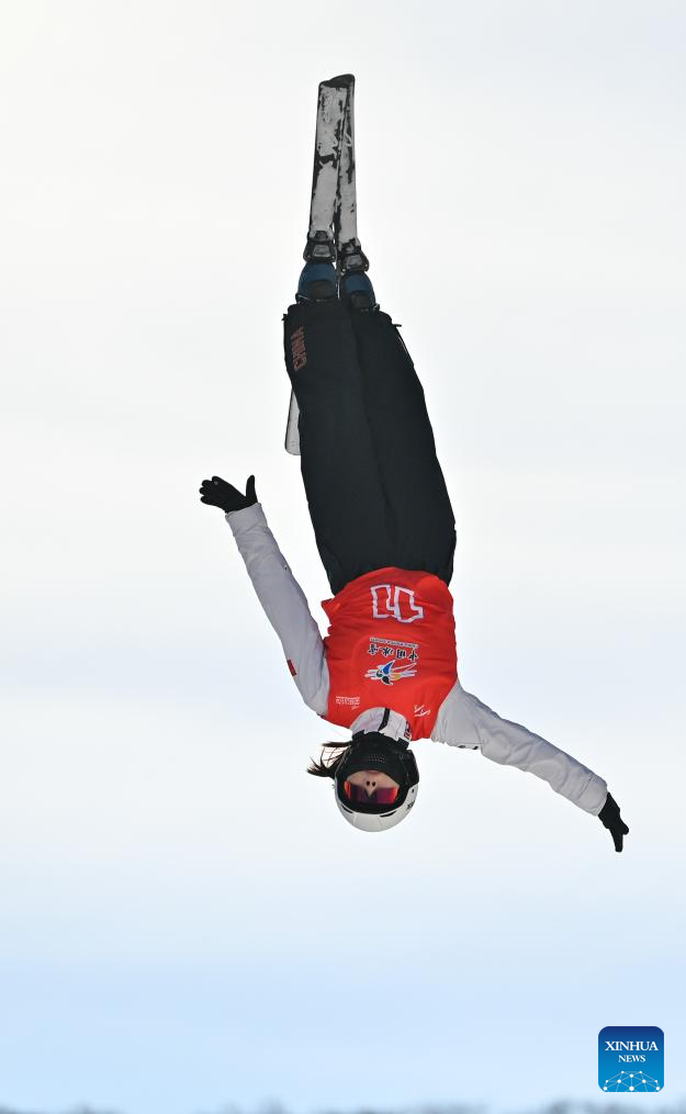 Xu Mengtao of China competes during the final of Women's Aerials at 2024-2025 FIS Freestyle Ski World Cup at the Beidahu Ski Resort in Jilin City, northeast China's Jilin Province, Feb. 23, 2025. (Xinhua/Yan Linyun)