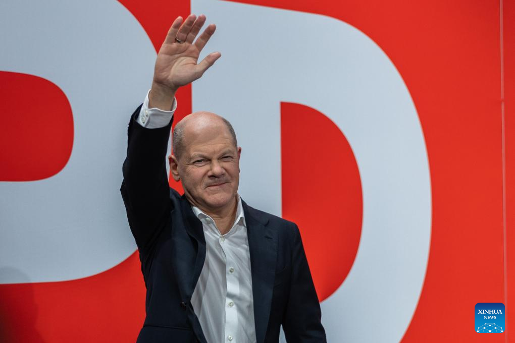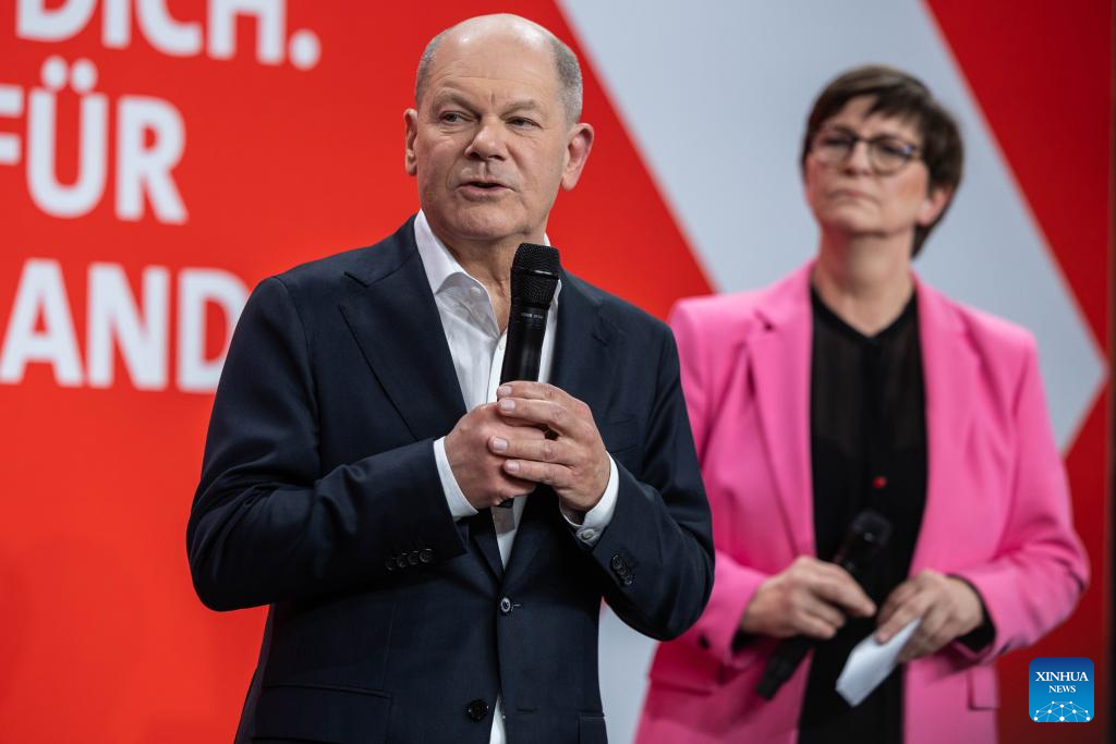 BERLIN, Feb. 23 (Xinhua) -- Germany's conservative bloc, the Christian Democratic Union (CDU) and the Christian Social Union (CSU), has taken the lead in the country's 2025 federal election, according to preliminary results released by German public broadcaster ARD on Sunday evening.
