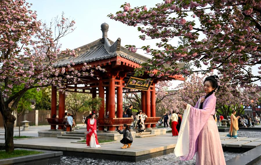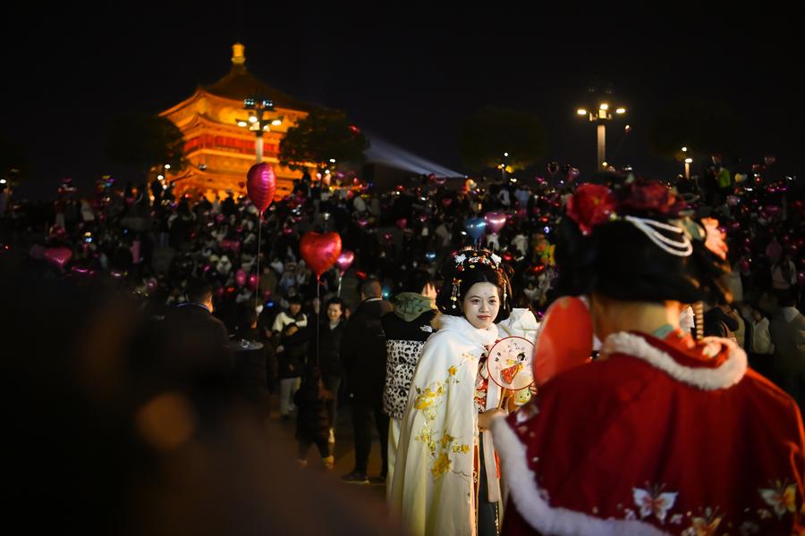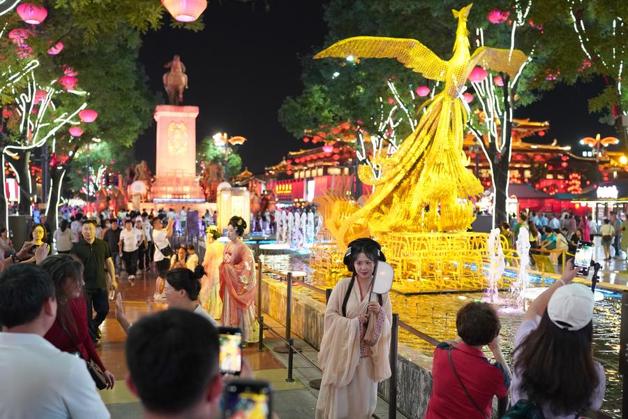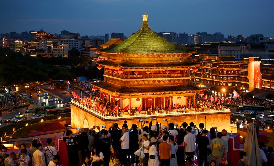 Tourists look at a Terracotta Warrior at the Emperor Qinshihuang's Mausoleum Site Museum in Xi'an, northwest China's Shaanxi Province, Sept. 7, 2024. (Xinhua/Zhang Bowen)Tourists admire blossoms and pose for photos in the Giant Wild Goose Pagoda scenic area in Xi'an, northwest China's Shaanxi Province, April 8, 2024. (Xinhua/Zou Jingyi)A tourist looks at exhibits displayed during an exhibition in Shaanxi History Museum in Xi'an, northwest China's Shaanxi Province, May 18, 2024. (Xinhua/Li Yibo)An aerial drone photo shows tourists watching a sitcom at the Grand Tang Mall in Xi'an, northwest China's Shaanxi Province, Jan. 22, 2025. (Xinhua/Shao Rui)This photo shows the Yongning Gate in Xi'an, northwest China's Shaanxi Province, April 25, 2023. (Xinhua/Liu Xiao)An aerial drone photo shows the Yongning Gate in Xi'an, northwest China's Shaanxi Province, Jan. 22, 2025. (Xinhua/Zou Jingyi)Tourists enjoy the night view of Bell Tower from a viewing deck in Xi'an, northwest China's Shaanxi Province, May 2, 2023. (Xinhua/Zou Jingyi)A tourist wearing traditional costumes poses for photos at the Bell Tower in Xi'an, northwest China's Shaanxi Province, Dec. 31, 2024. (Xinhua/Zou Jingyi)A drone photo shows tourists walking on the City Wall of Xi'an, northwest China's Shaanxi Province, Nov. 6, 2024. (Xinhua/Zou Jingyi)An aerial drone photo shows the Qin Han Museum of the Shaanxi History Museum in Xi'an, northwest China's Shaanxi Province, May 13, 2024. (Xinhua/Li Yibo)A drone photo shows tourists at the foot of the Giant Wild Goose Pagoda in Xi'an, northwest China's Shaanxi Province, April 10, 2024. (Xinhua/Zou Jingyi)A drone photo shows the Small Wild Goose Pagoda in Xi'an, northwest China's Shaanxi Province, Nov. 10, 2024. (Xinhua/Zou Jingyi)Tourists visit the Emperor Qinshihuang's Mausoleum Site Museum in Xi'an, northwest China's Shaanxi Province, Sept. 8, 2024. (Xinhua/Li Yibo)Tourists visit the Grand Tang Mall in Xi'an, northwest China's Shaanxi Province, May 20, 2024. (Xinhua/Shao Rui)This photo shows a performance staged at the Huaqing Palace scenic area in Xi'an, northwest China's Shaanxi Province, Dec. 1, 2024. (Xinhua/Zou Jingyi)■