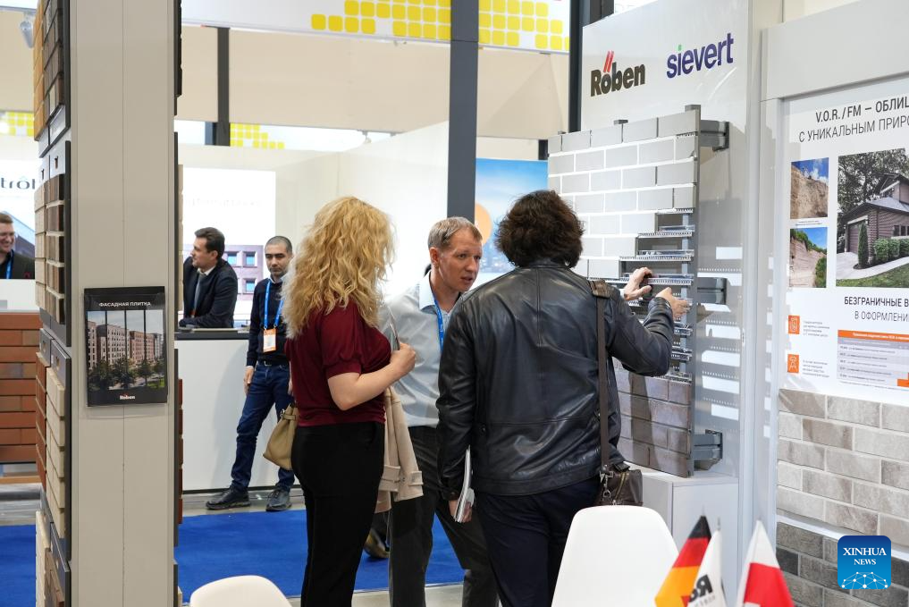 People attend UzBuild, an international exhibition for construction and interior design, in Tashkent, the capital of Uzbekistan, Feb. 25, 2025. The three-day exhibition, which kicked off here on Tuesday, covers a wide range of topics including construction technologies, building materials, interior decoration, and design. (Photo by Zafar Khalilov/Xinhua)
