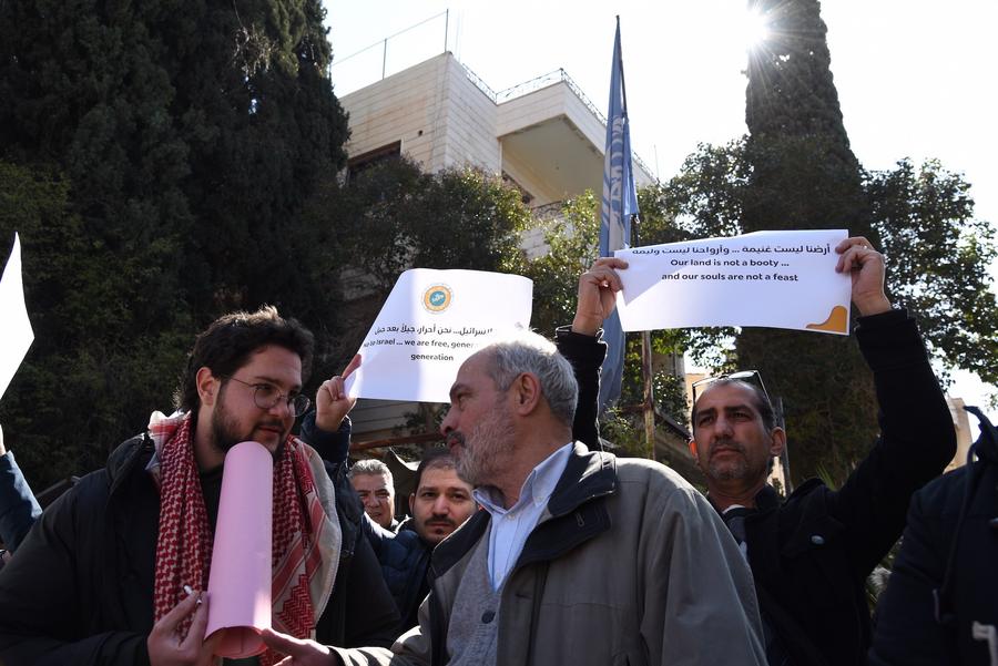 DAMASCUS, Feb. 25 (Xinhua) -- Protests broke out across southern Syria on Tuesday in response to Israeli Prime Minister Benjamin Netanyahu's recent remarks rejecting the presence of Syria's interim government forces in the area south of Damascus.