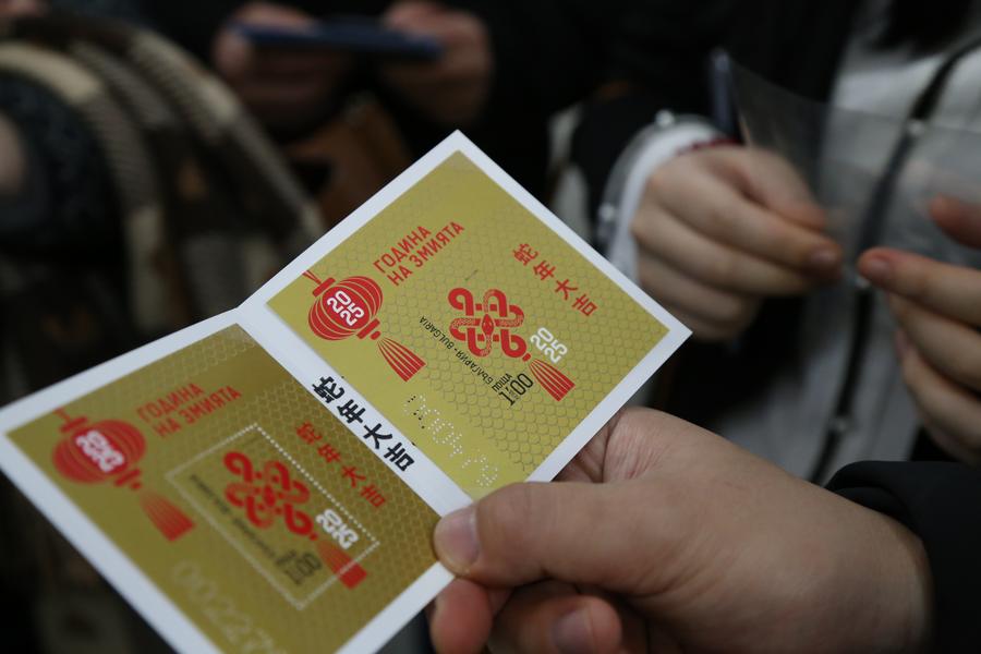 SOFIA, Feb. 25 (Xinhua) -- The Bulgarian Post released a new stamp to mark Chinese New Year, the Year of the Wood Snake, at a ceremony in the Central Post Office Building here on Tuesday.