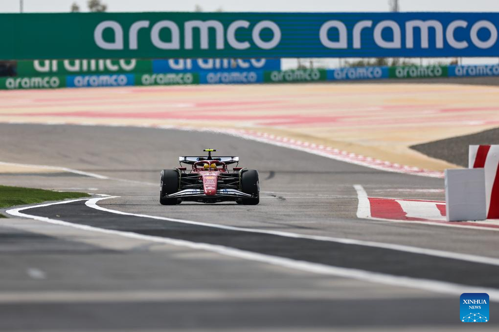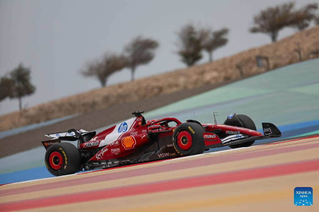 Ferrari's driver Charles Leclerc of Monaco drives during the F1 pre-season testing at the Bahrain International Circuit in Sakhir, Bahrain, Feb. 26, 2025. (Photo by Qian Jun/Xinhua)
