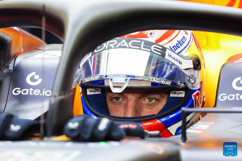 Red Bull Racing's driver Max Verstappen of the Netherlands sits in the car in the pit lane during the F1 pre-season testing at the Bahrain International Circuit in Sakhir, Bahrain, Feb. 26, 2025. (Photo by Qian Jun/Xinhua)