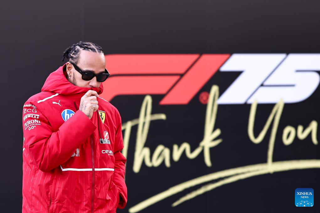 Ferrari's driver Lewis Hamilton of Britain arrives before the F1 pre-season testing at the Bahrain International Circuit in Sakhir, Bahrain, Feb. 26, 2025. (Photo by Qian Jun/Xinhua)