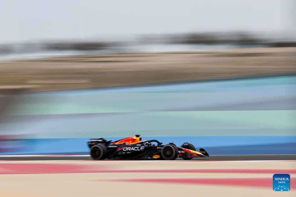 Red Bull Racing's driver Max Verstappen of the Netherlands drives during the F1 pre-season testing at the Bahrain International Circuit in Sakhir, Bahrain, Feb. 26, 2025. (Photo by Qian Jun/Xinhua)