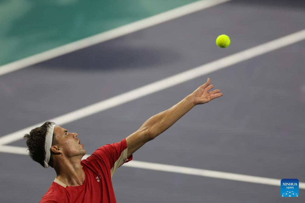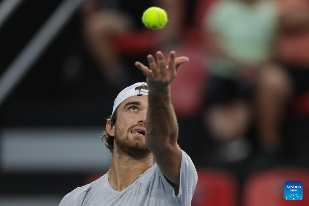 Daniel Altmaier of Germany serves during the men's singles round of 16 match against Tomas Machac of the Czech Republic at the 2025 ATP Mexican Open tennis tournament in Acapulco, Mexico, Feb. 26, 2025. (Photo by Francisco Canedo/Xinhua)