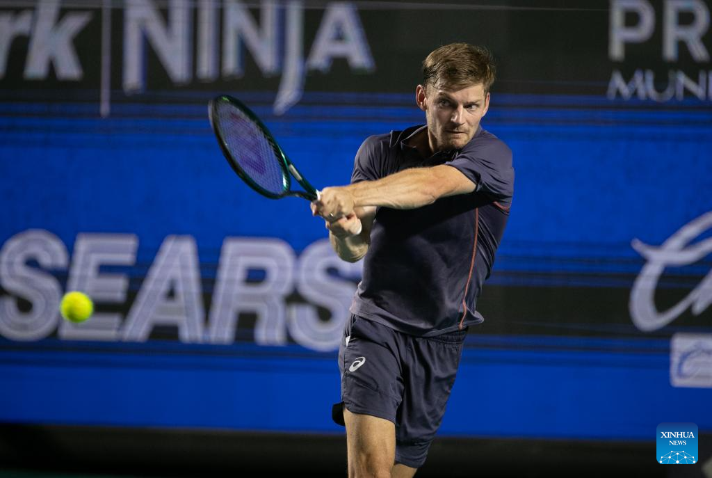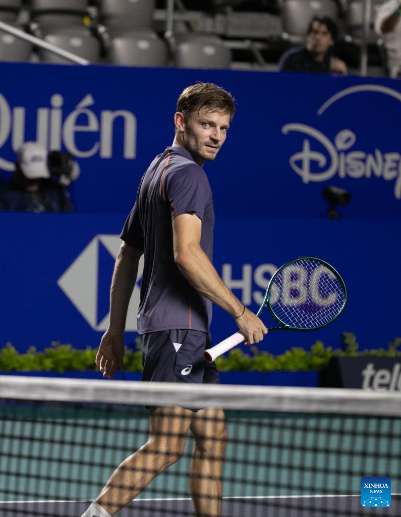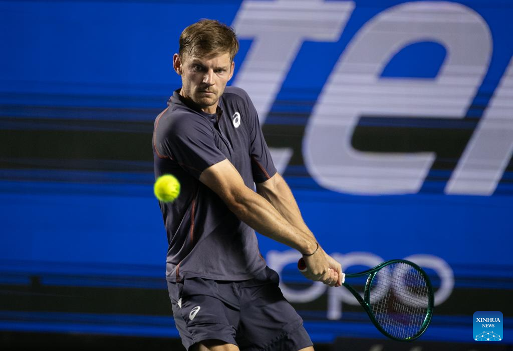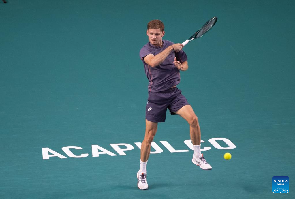 David Goffin of Belgium hits a return during the men's singles round of 16 match against Ben Shelton of the United States at the 2025 ATP Mexican Open tennis tournament in Acapulco, Mexico, Feb. 26, 2025. (Xinhua/Li Mengxin)